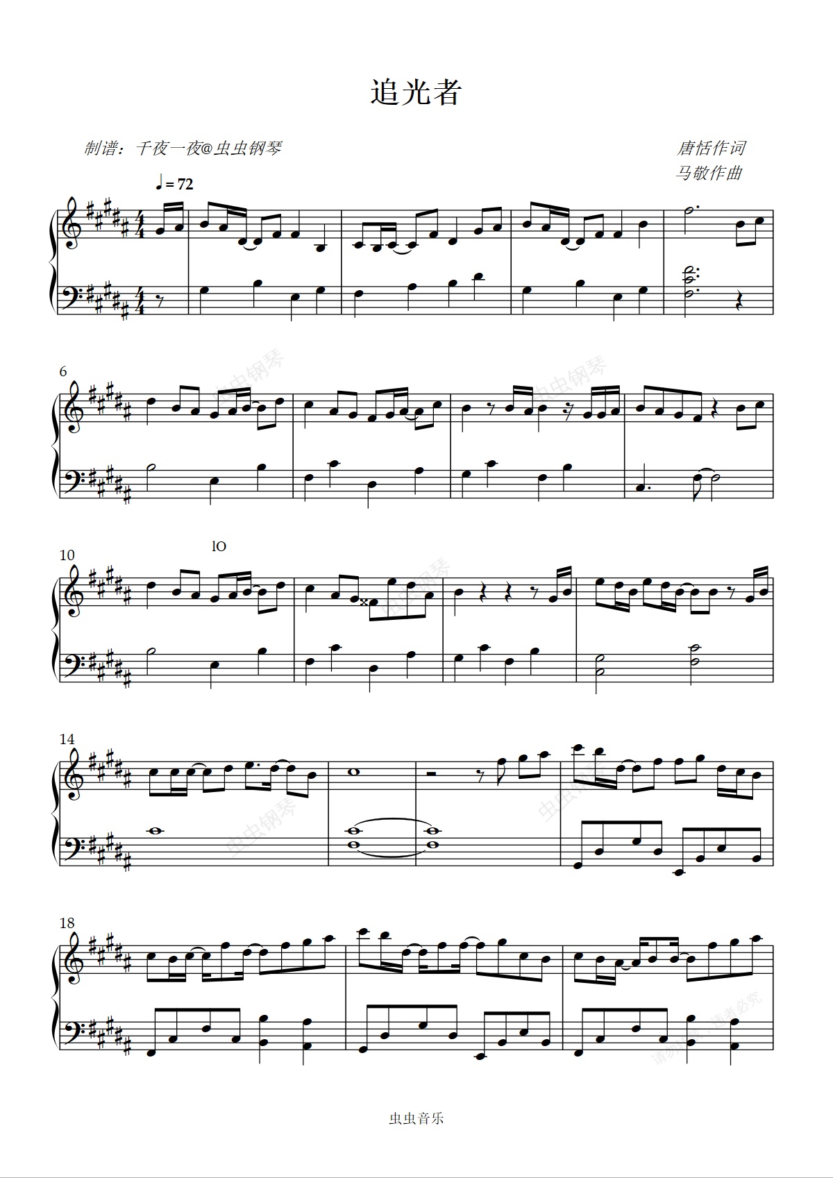 钢琴谱:【钢琴】夏至未至插曲《追光者》