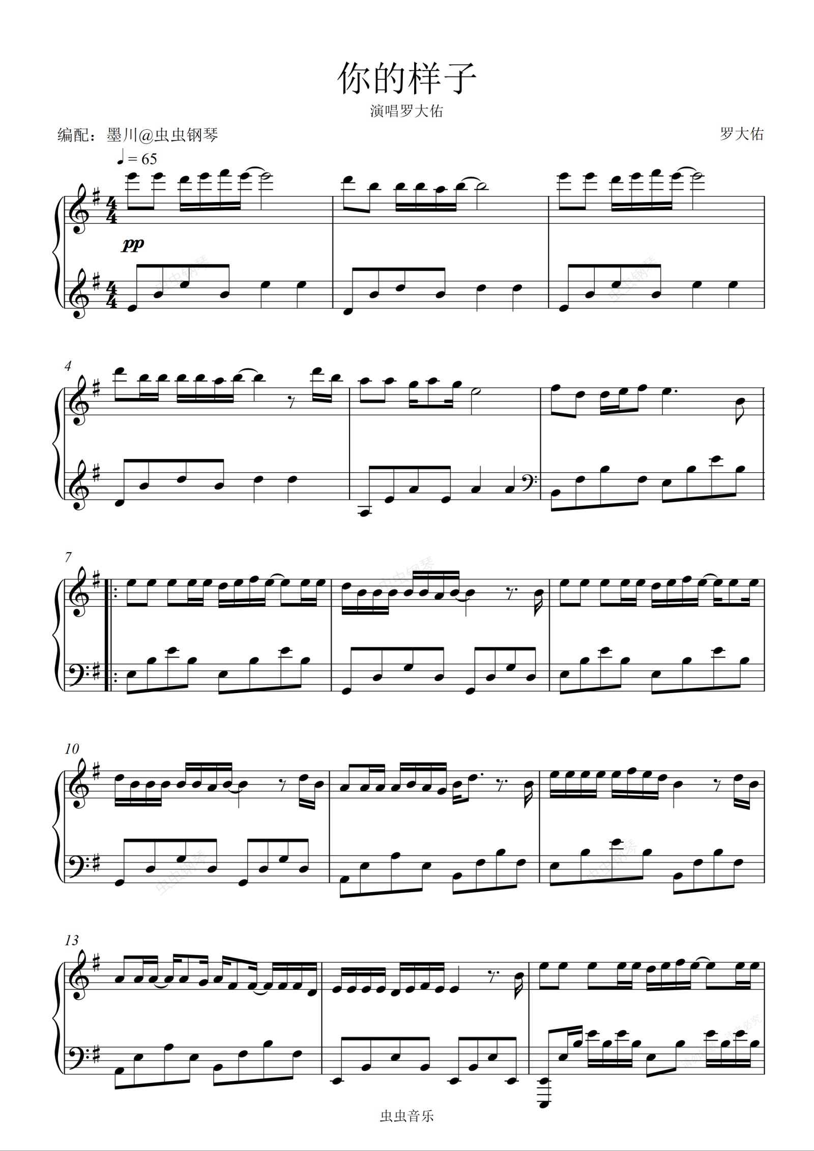 钢琴谱:88你的样子—罗大佑—G调完美演奏