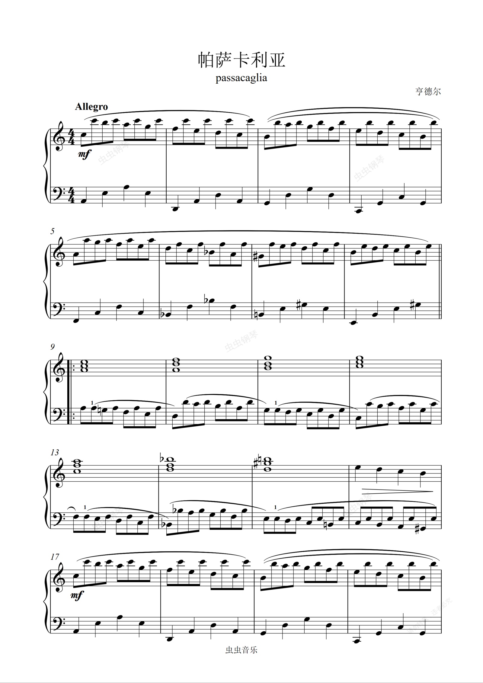 钢琴谱:帕萨卡利亚passacaglia—亨德尔—C调简单好听