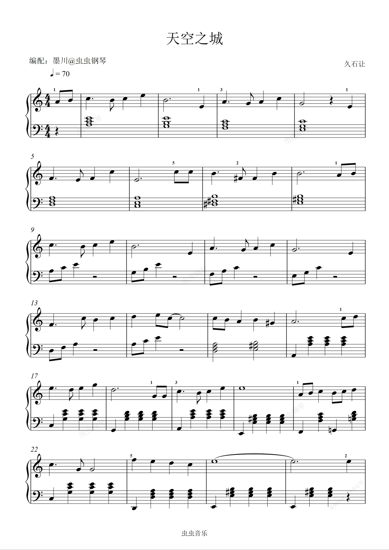 钢琴谱:天空之城—久石让—C调简易汤三程度