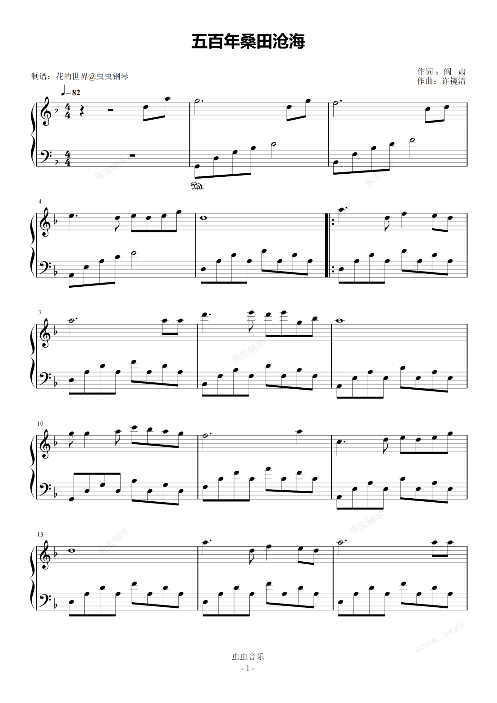 钢琴谱:五百年沧海桑田 原调简易版 郁钧剑 流行经典