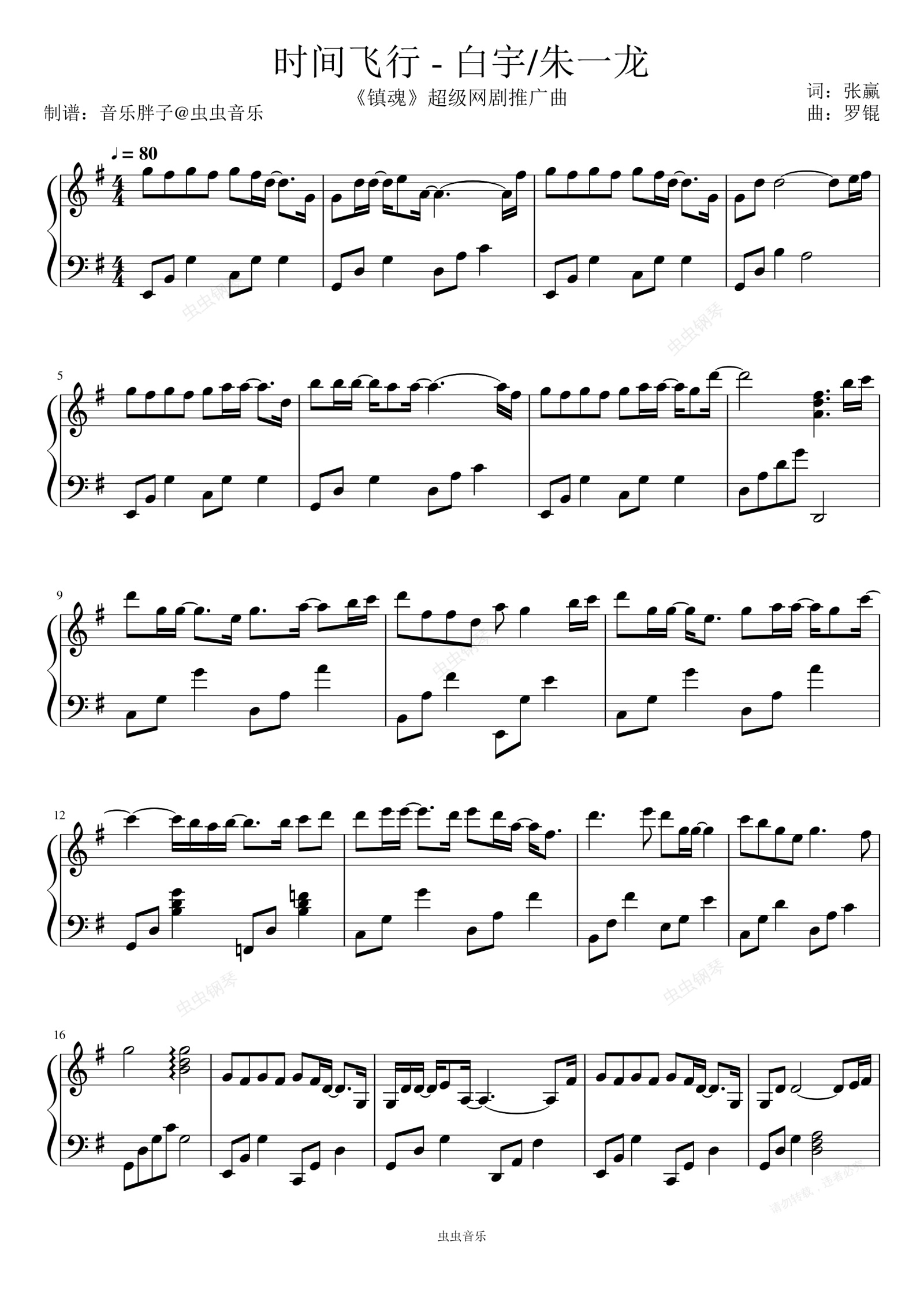 钢琴谱:时间飞行 (《镇魂》超级网剧推广曲) - 白宇/朱一龙