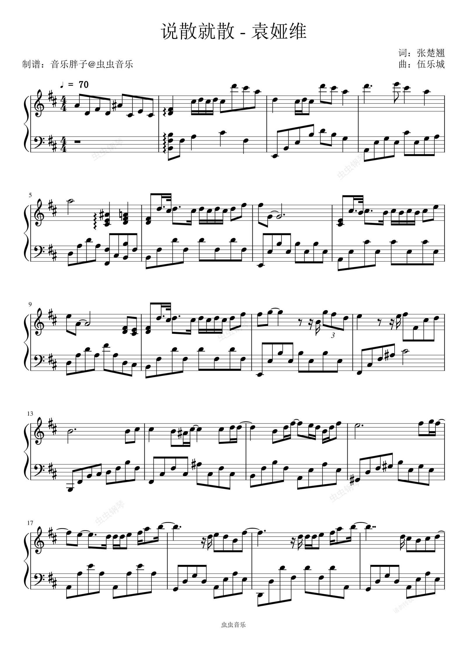 钢琴谱:说散就散 - 袁娅维TIA RAY