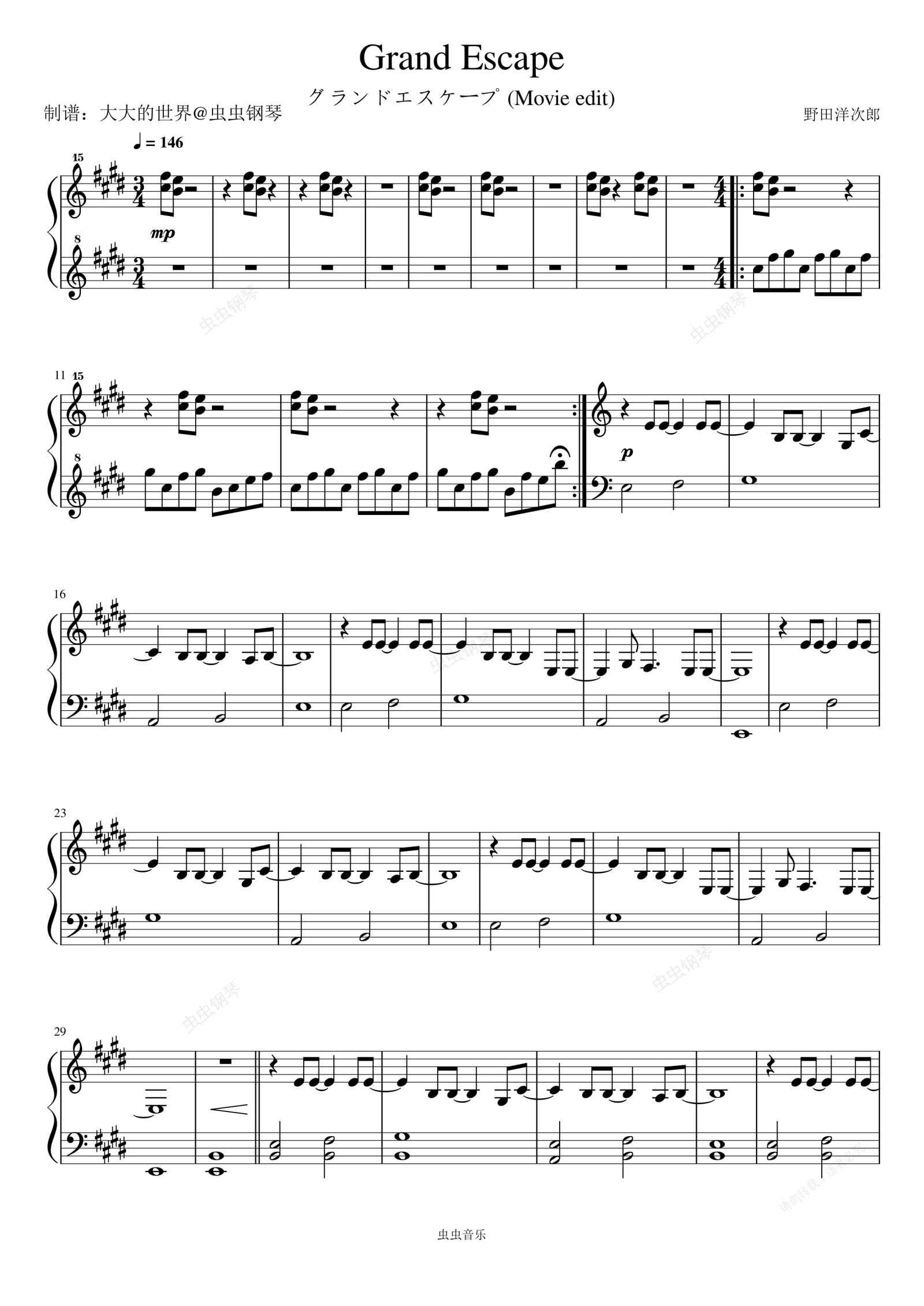 钢琴谱:Grand Escape - グランドエスケープ (Movie edit) - 三浦透子