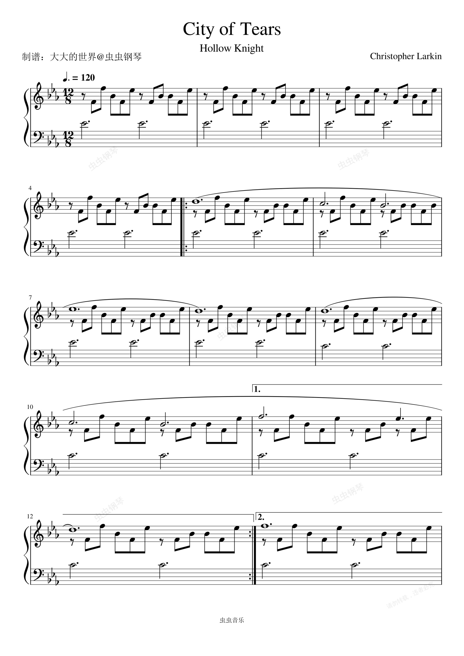 钢琴谱:City of Tears - Hollow Knight (空洞骑士)