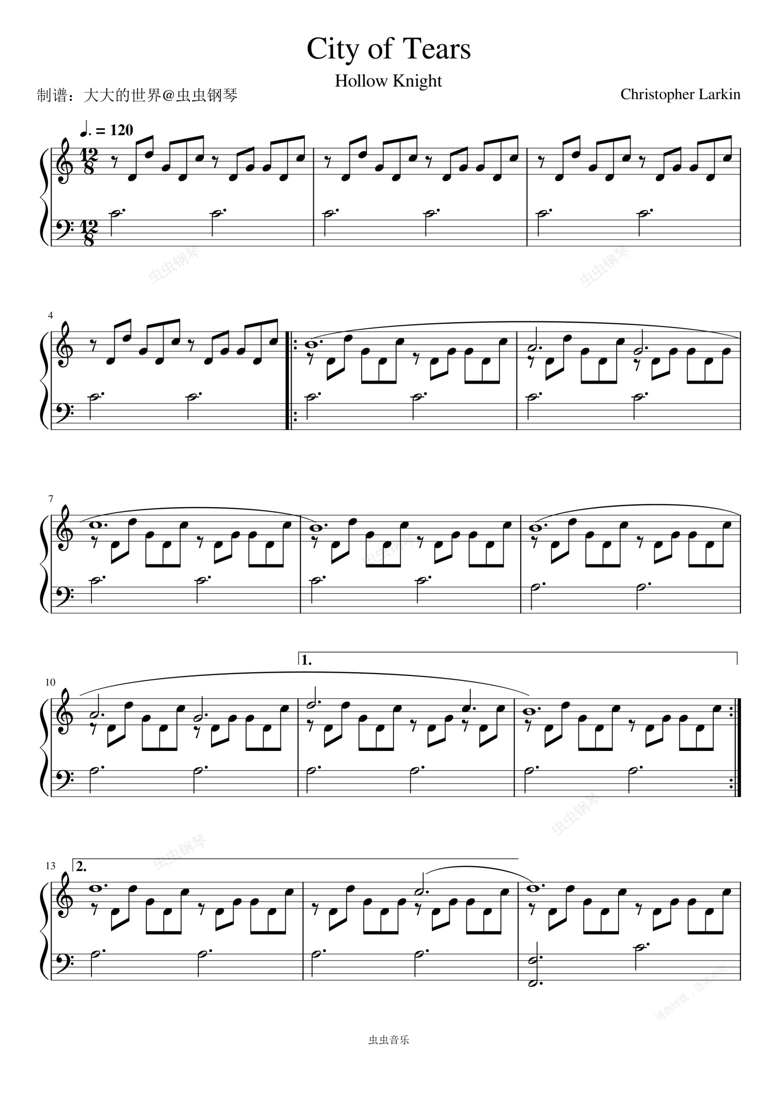 钢琴谱:City of Tears - Hollow Knight (空洞骑士)