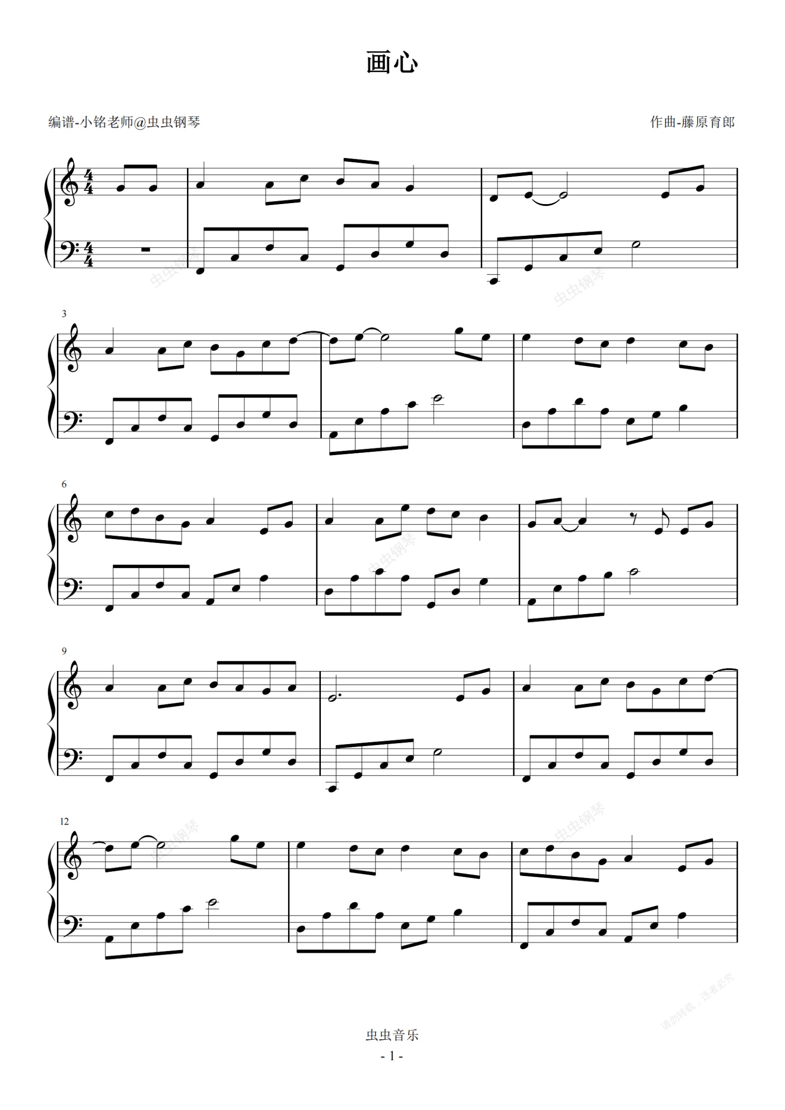 钢琴谱:画心 【最易上手】