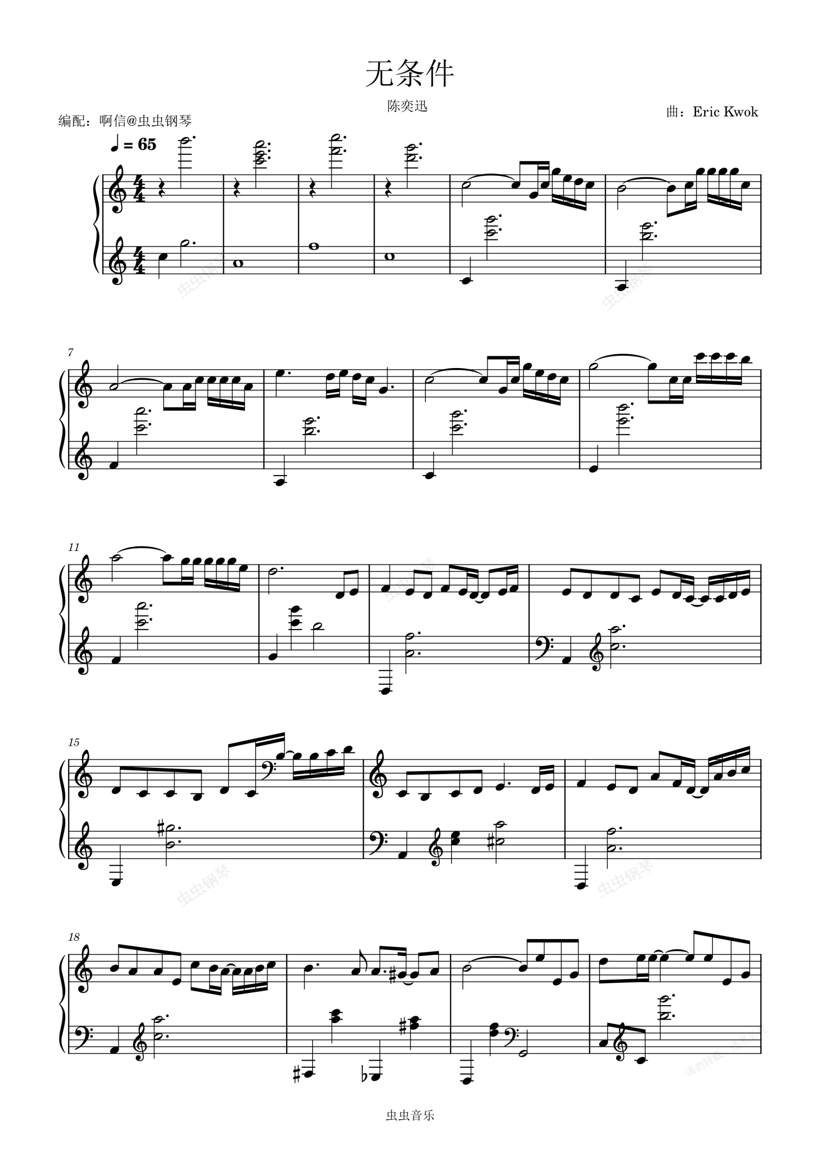 钢琴谱:无条件-陈奕迅-演唱会版编配-啊信