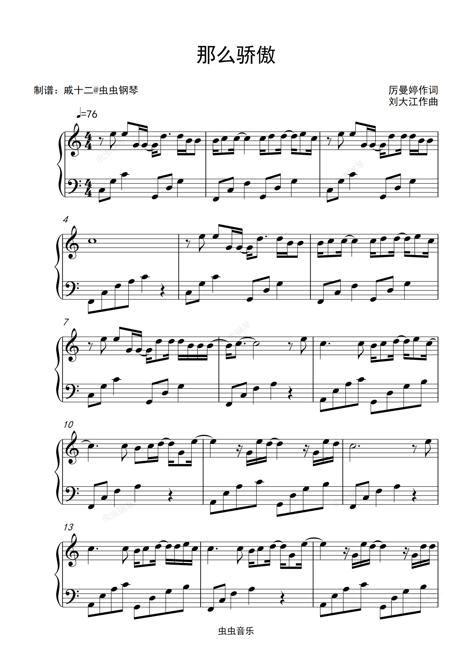 钢琴谱:那么骄傲-C调简单版
