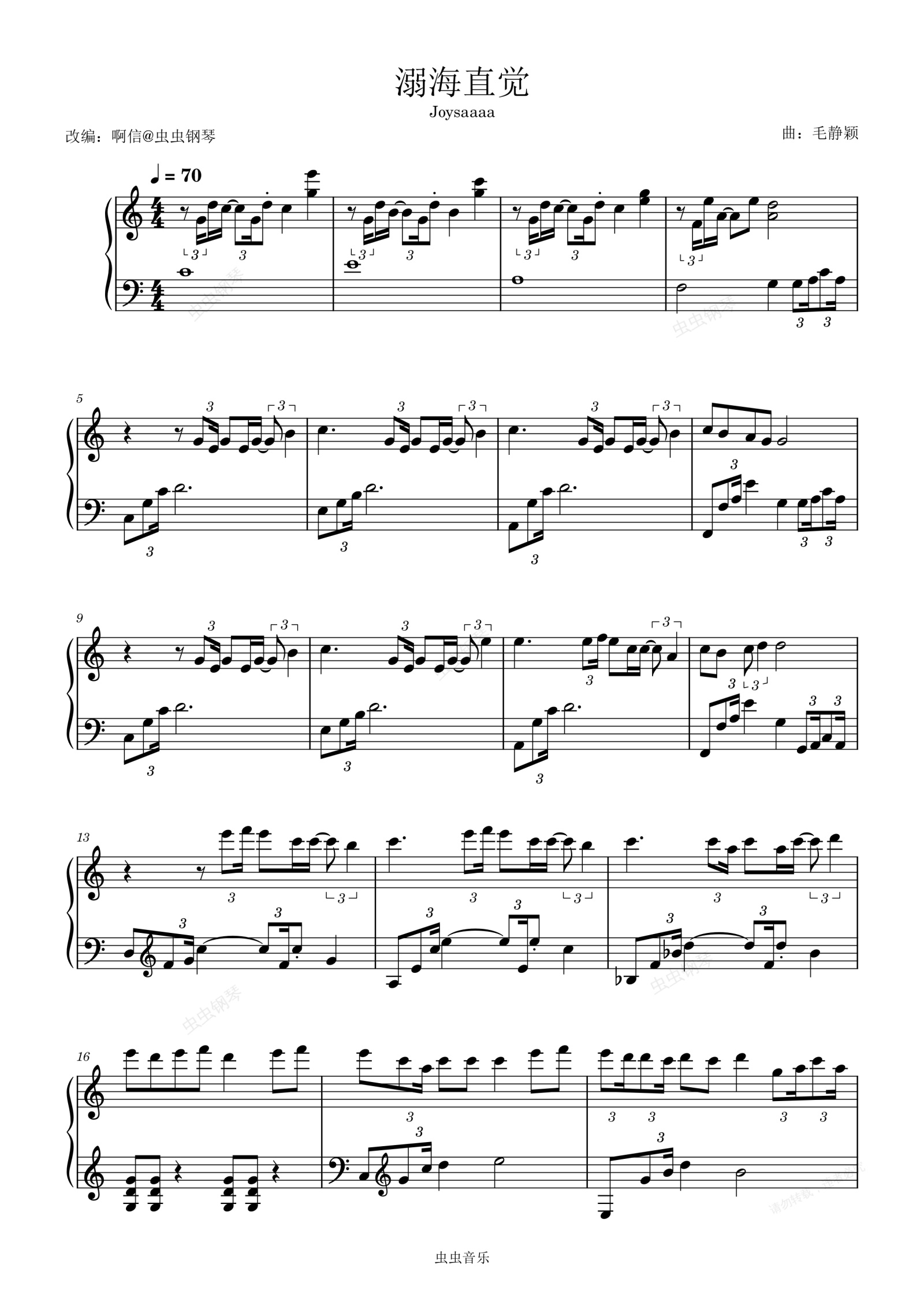 钢琴谱:溺海直觉-Joysaaaa-C调-啊信改编