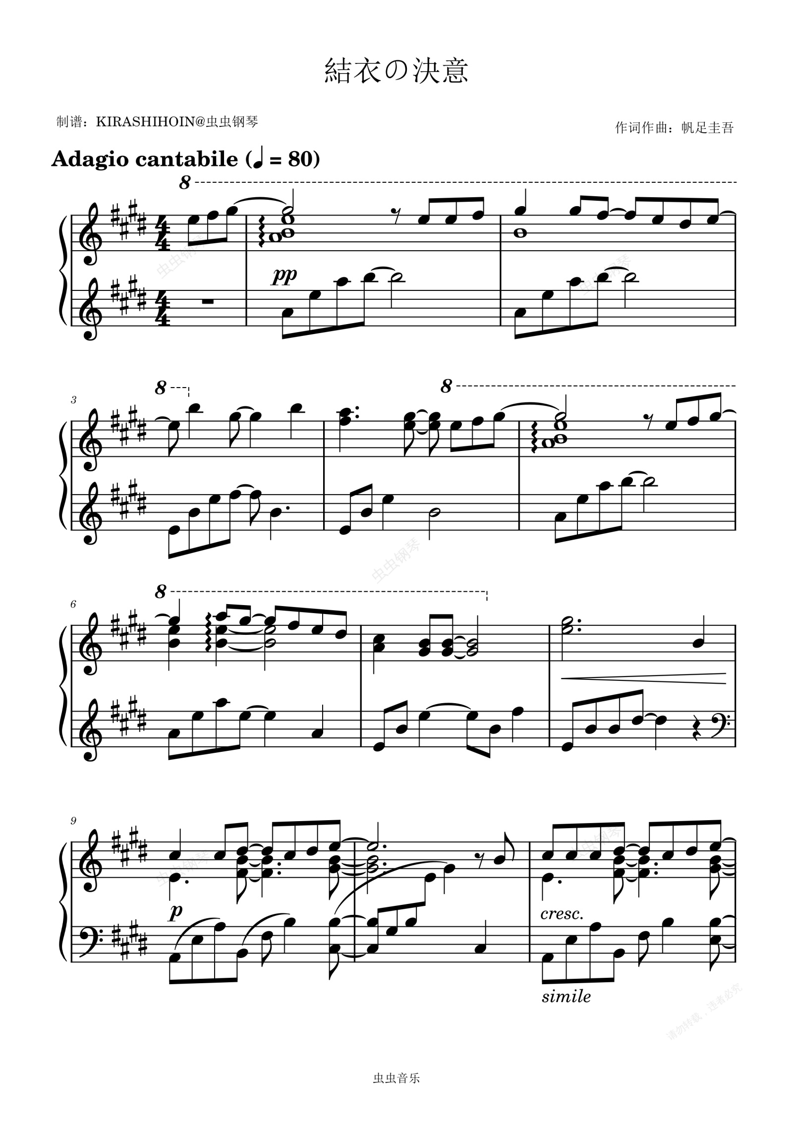 钢琴谱:結衣の決意(《我的青春恋爱物语果然有问题 第二季 续》插曲)- 帆足圭吾