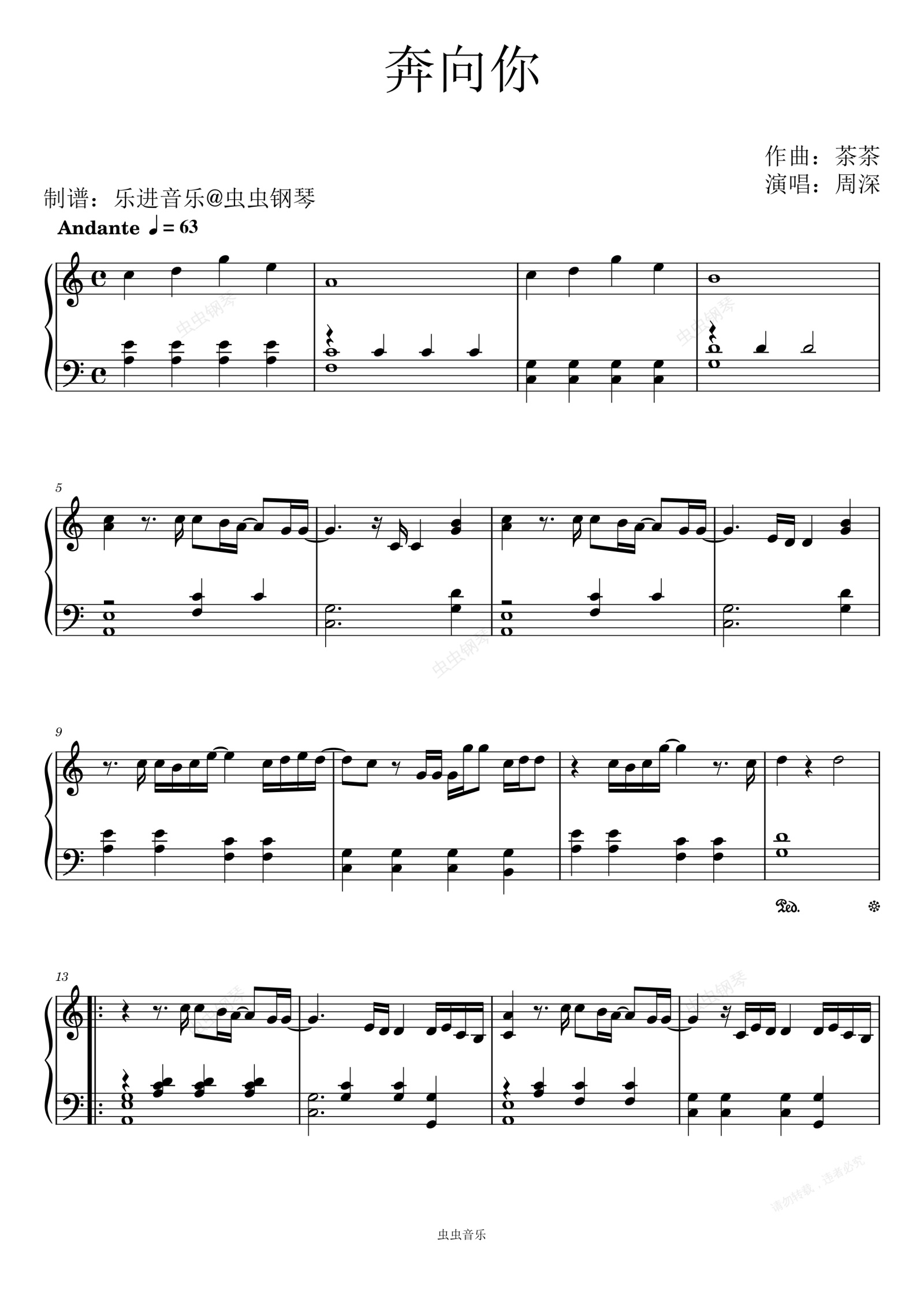 钢琴谱:《奔向你》C调精编