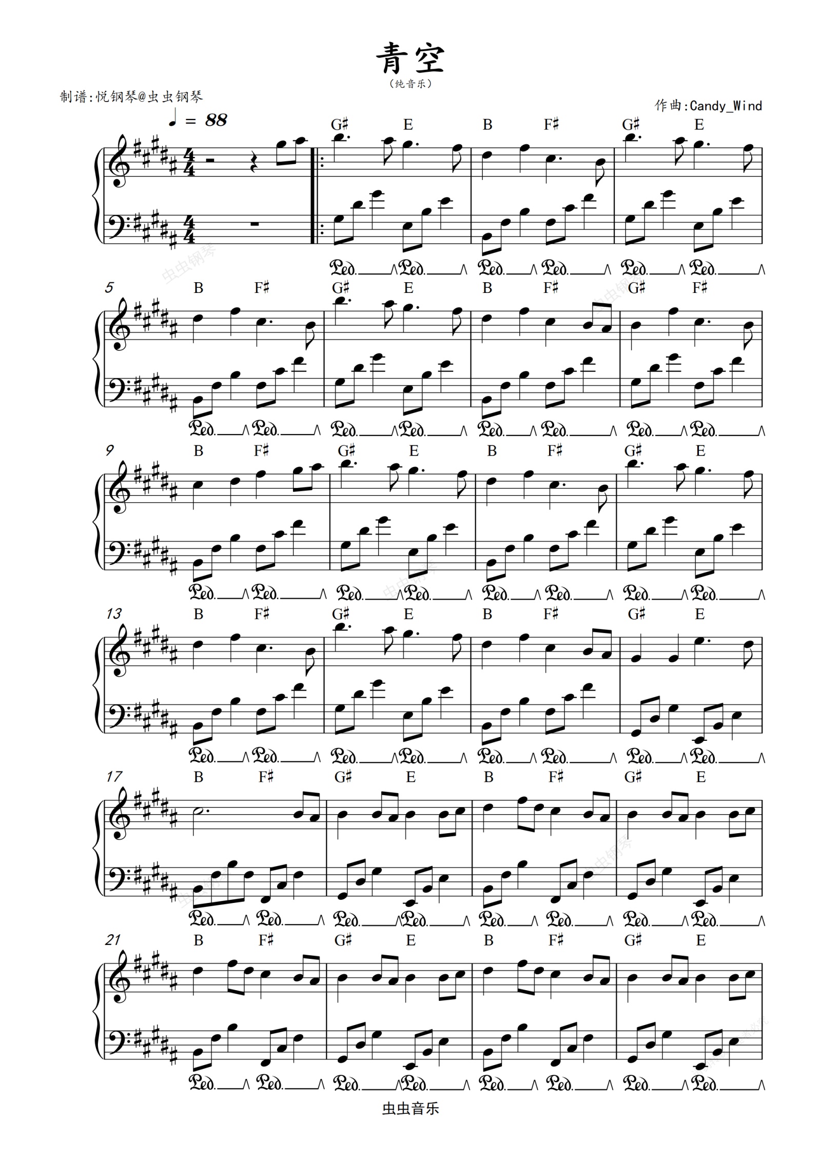 钢琴谱:青空 原调版(纯音乐)Candy_Wind