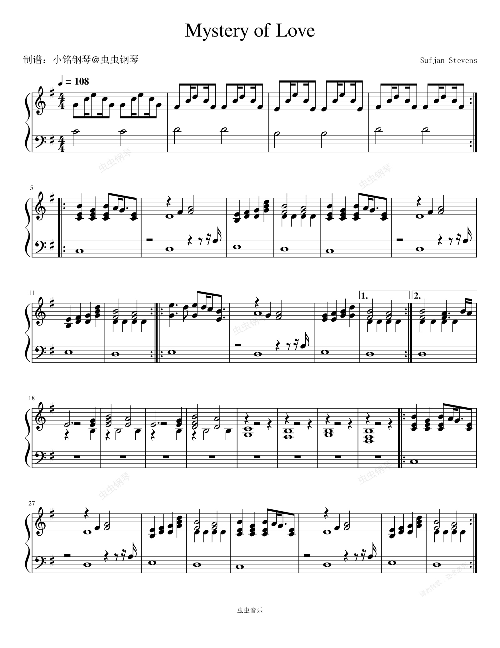 钢琴谱:Mystery of Love - Sufjan Stevens