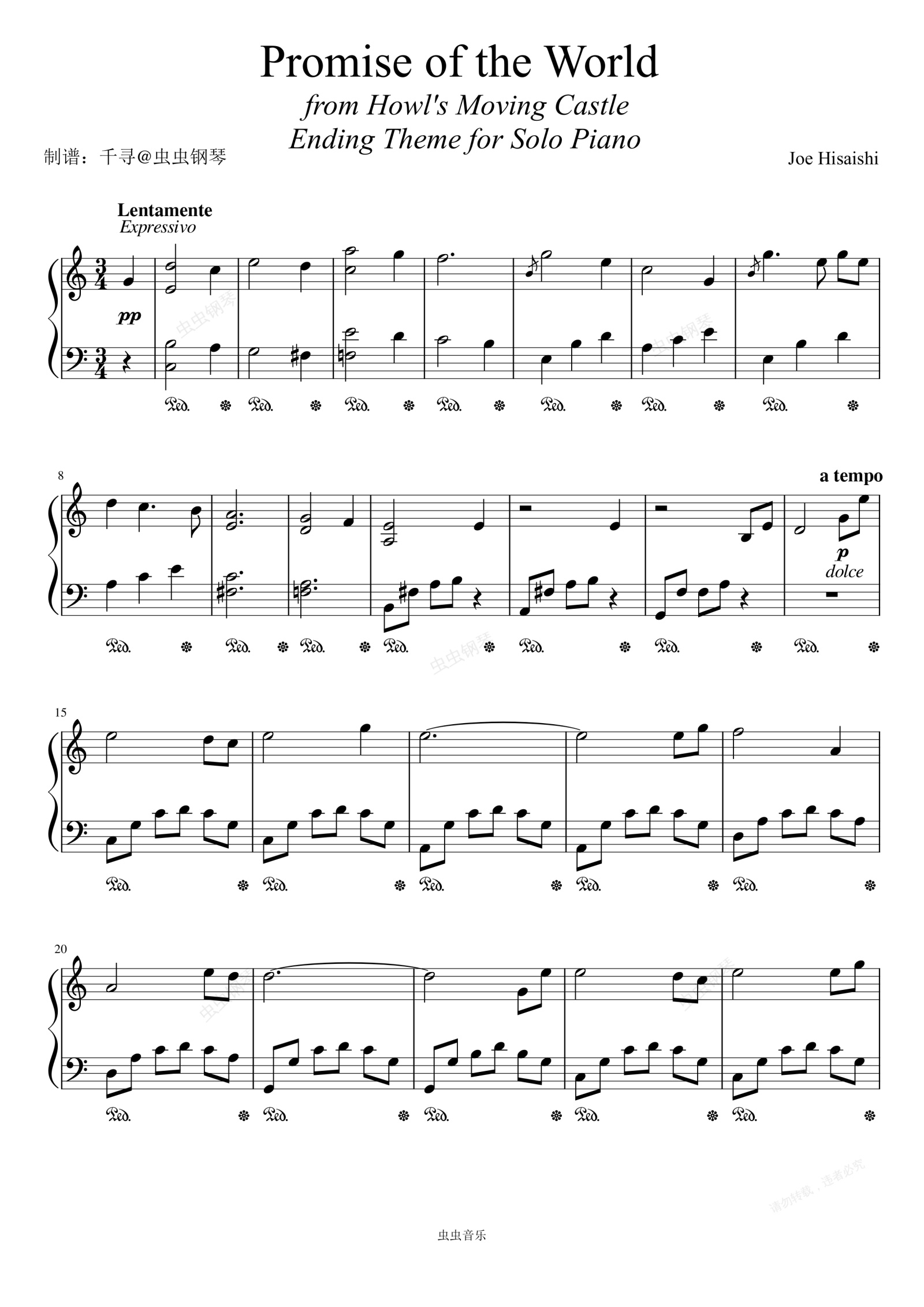 钢琴谱:世界的约束 - Promise of the World (哈尔的移动城堡)