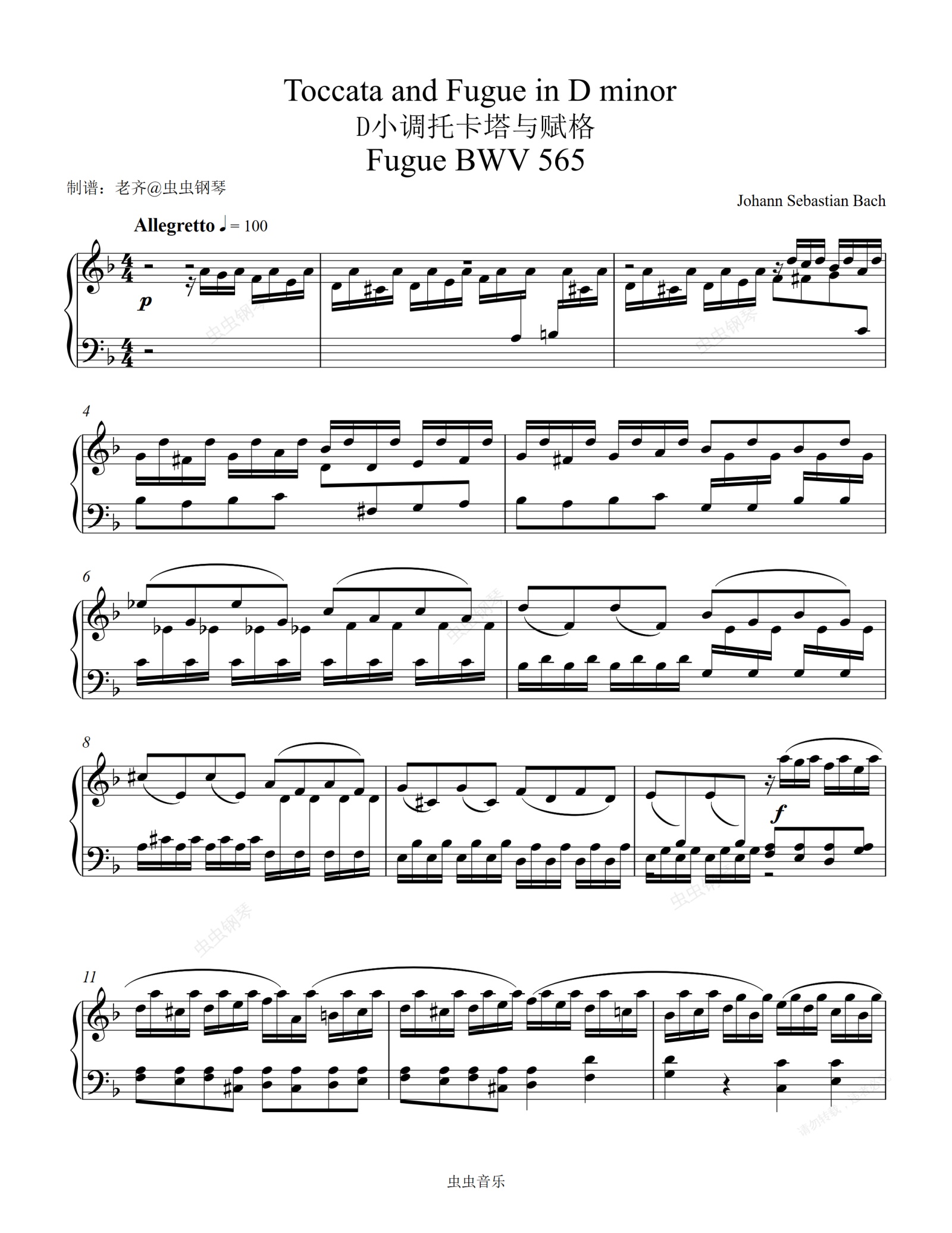 钢琴谱:【巴赫】D小调托卡塔与赋格-赋格