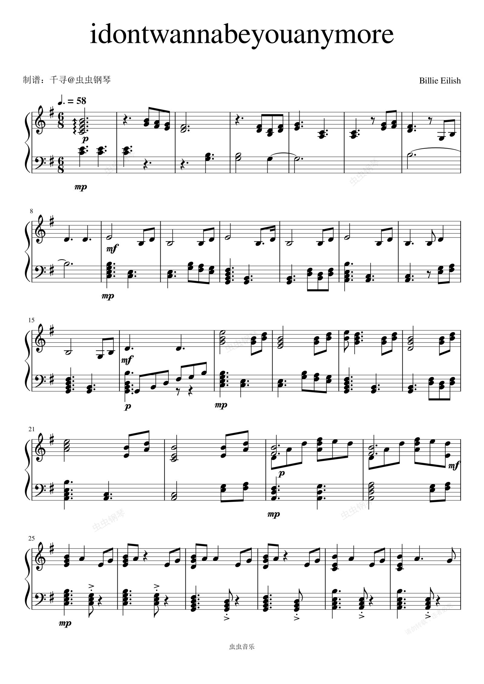 钢琴谱:idontwannabeyouanymore - Billie Eilish