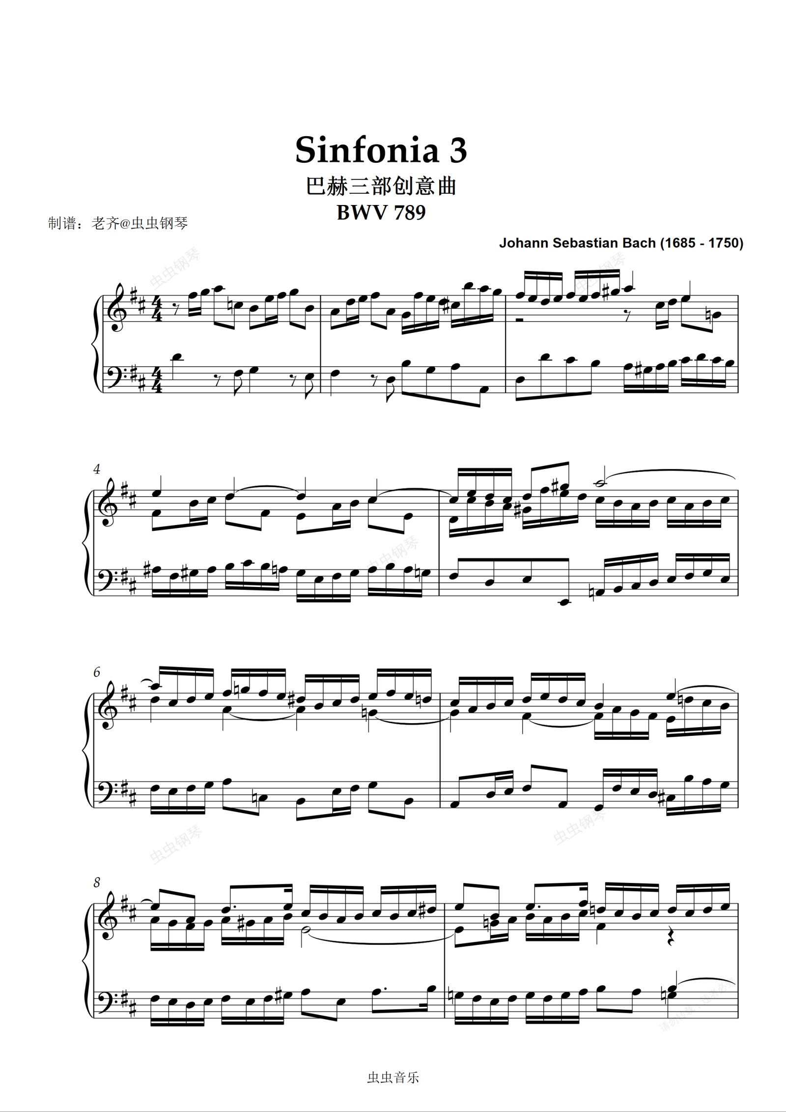 钢琴谱:Sinfonia 3 巴赫三部创意曲 BWV 789