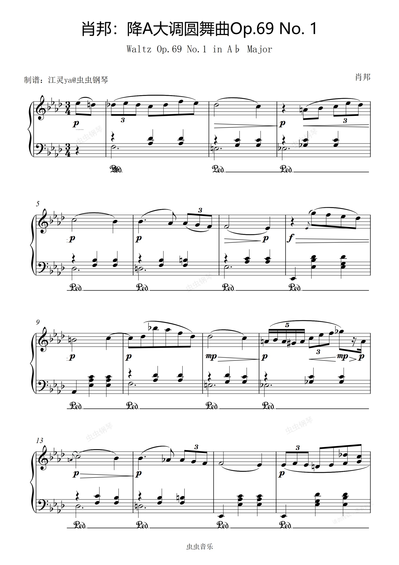 钢琴谱:肖邦:降A大调圆舞曲Op.69 No. 1