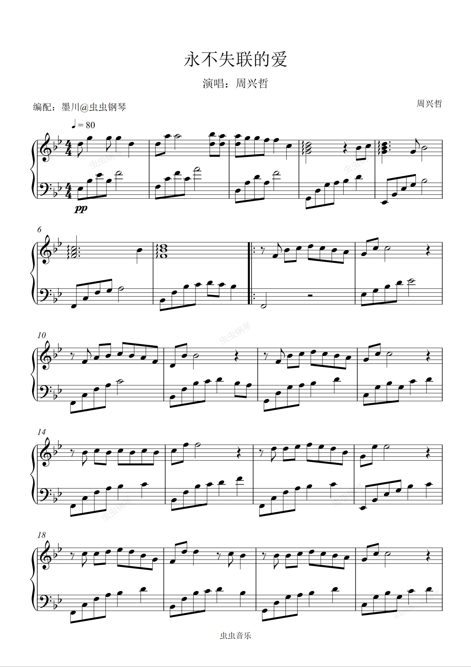 钢琴谱:永不失联的爱—周兴哲—原调编配