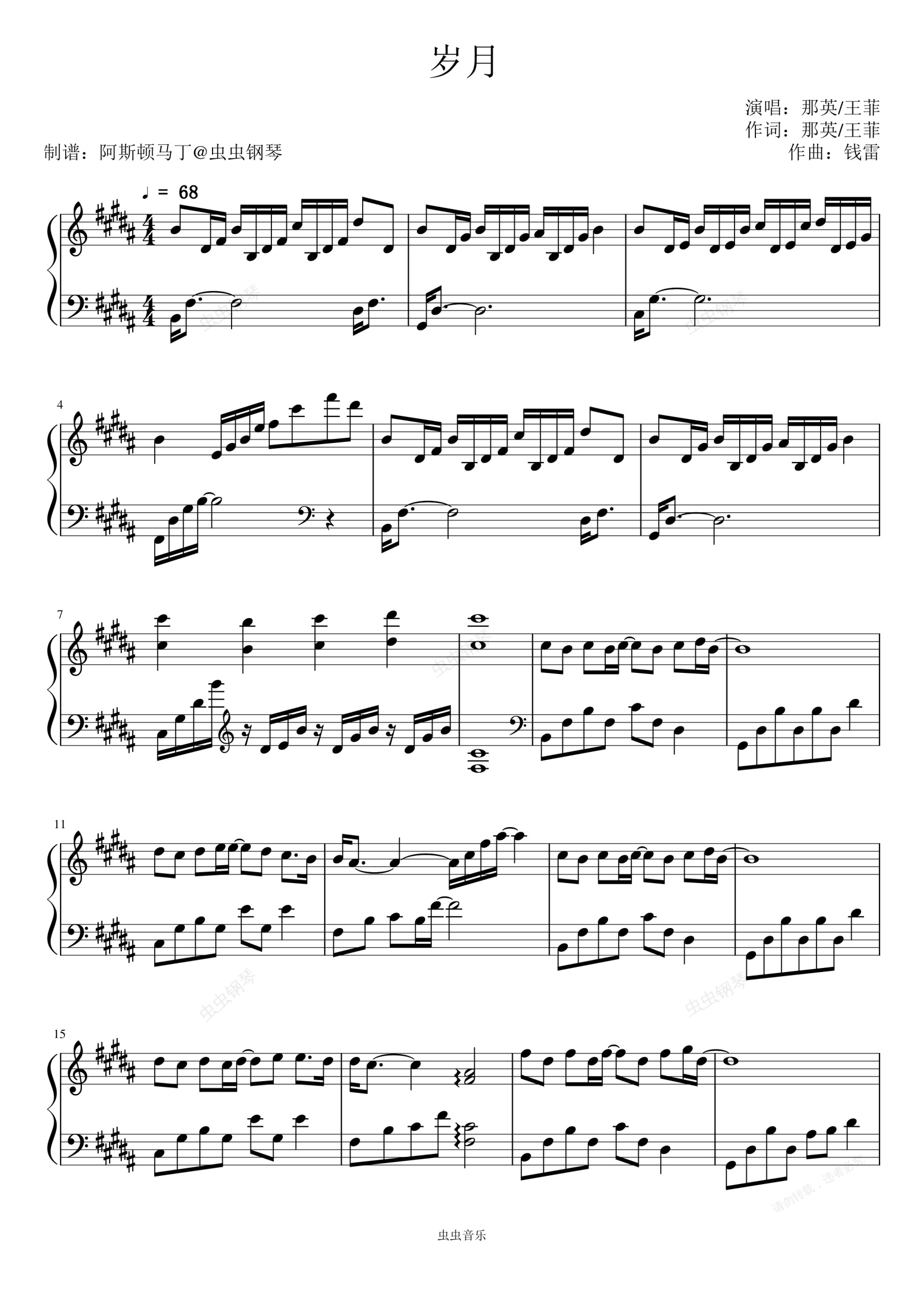钢琴谱:岁月 - 王菲 /那英【独奏】