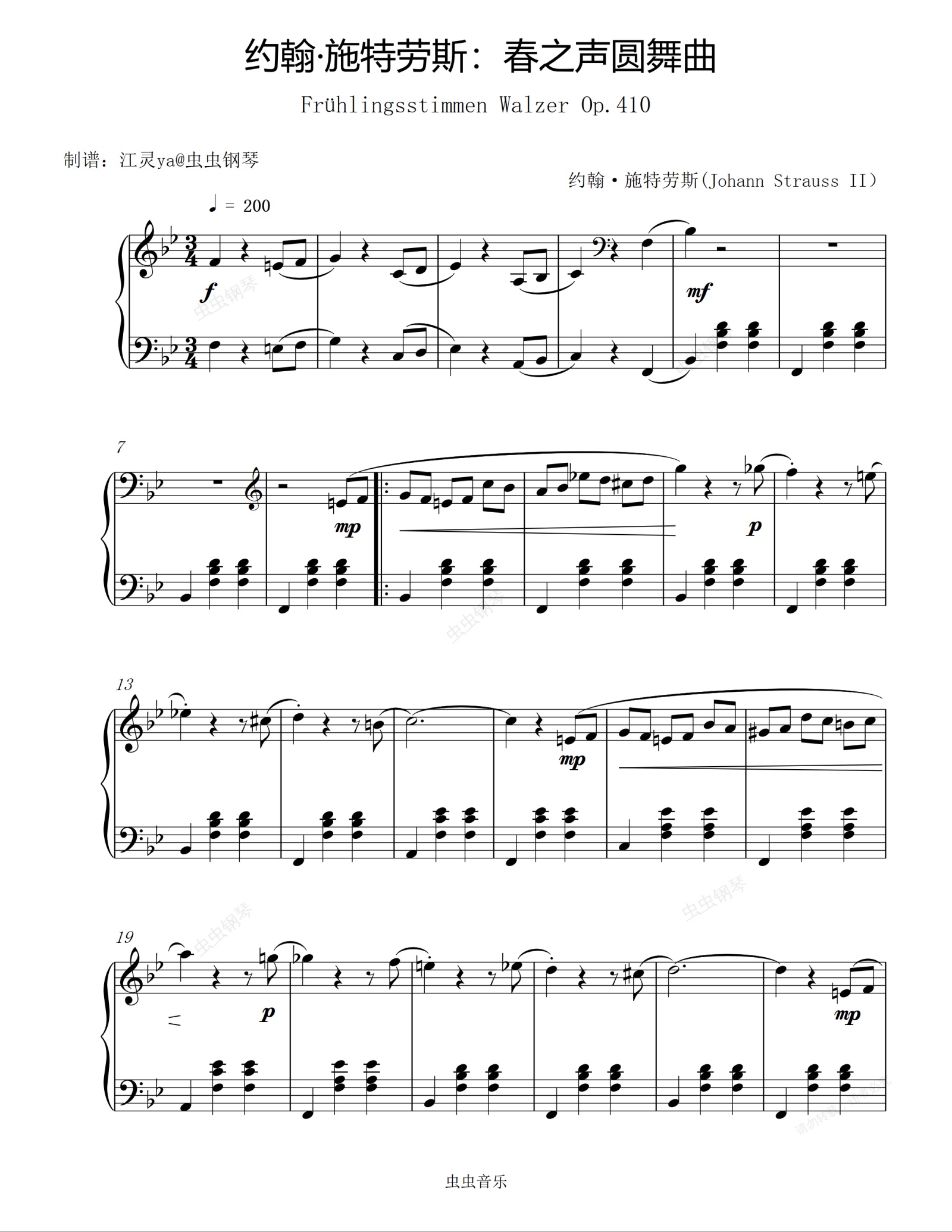 钢琴谱:约翰·施特劳斯:春之声圆舞曲