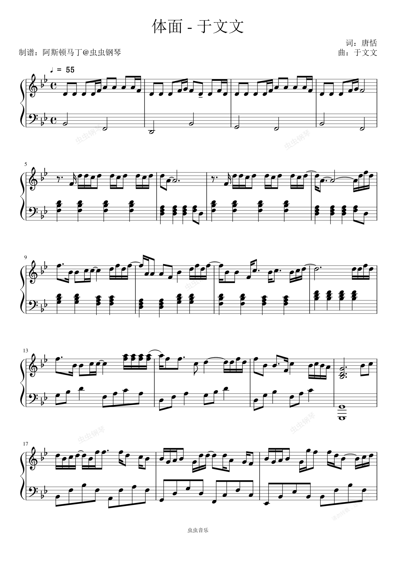 钢琴谱:体面 - 于文文 (Kelly)【独奏】