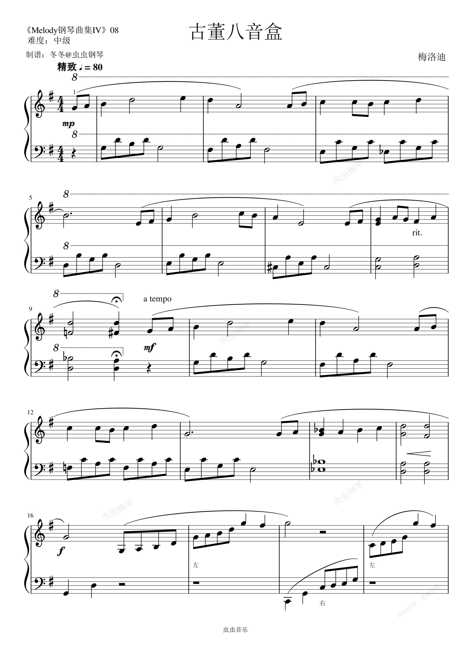 您的位置: 首页 > 钢琴谱库 > 古董八音盒钢琴谱-梅洛迪