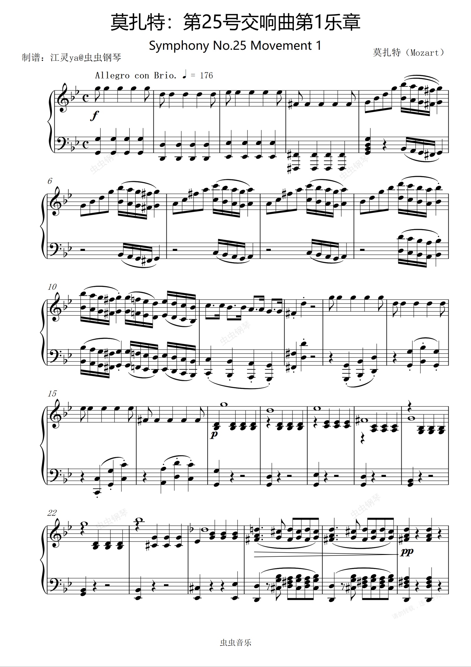 钢琴谱:莫扎特:第25号交响曲第1乐章