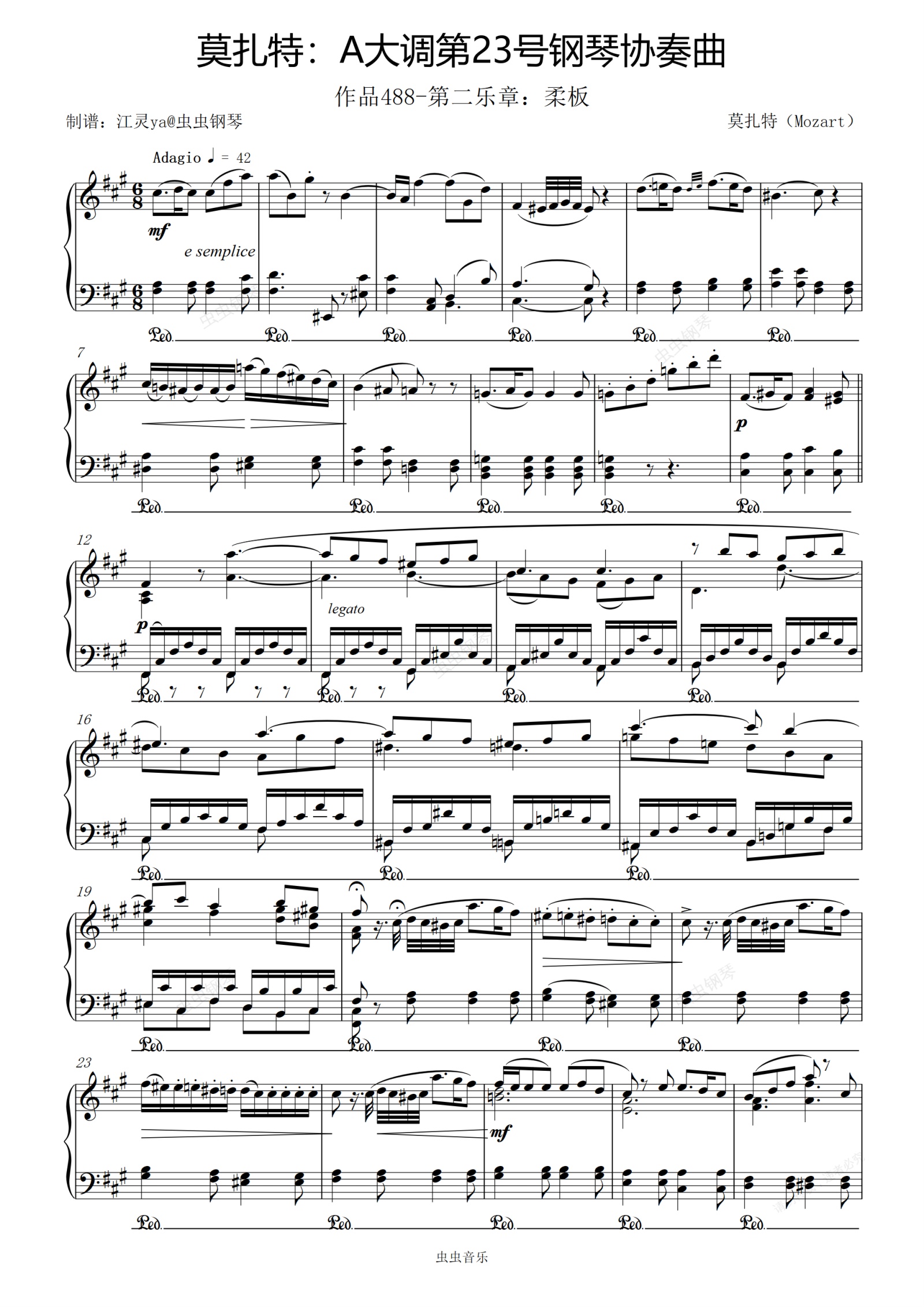 钢琴谱:莫扎特:A大调第23号钢琴协奏曲