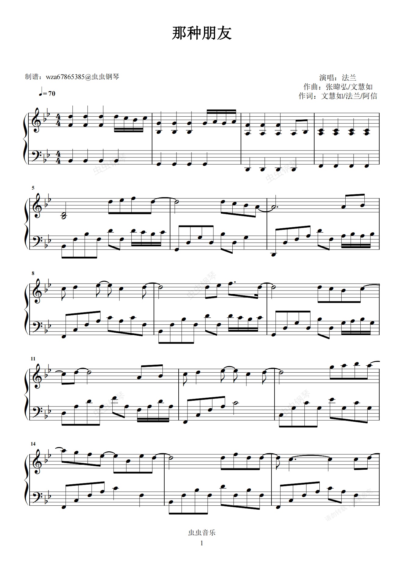 钢琴谱:那种朋友