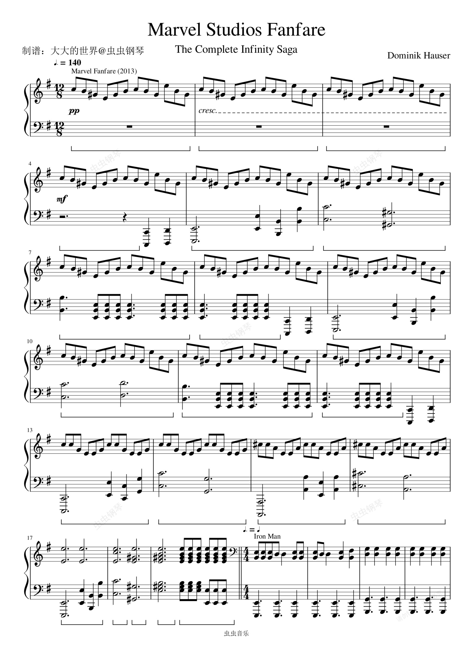钢琴谱:Marvel Studios Fanfare - Dominik Hauser
