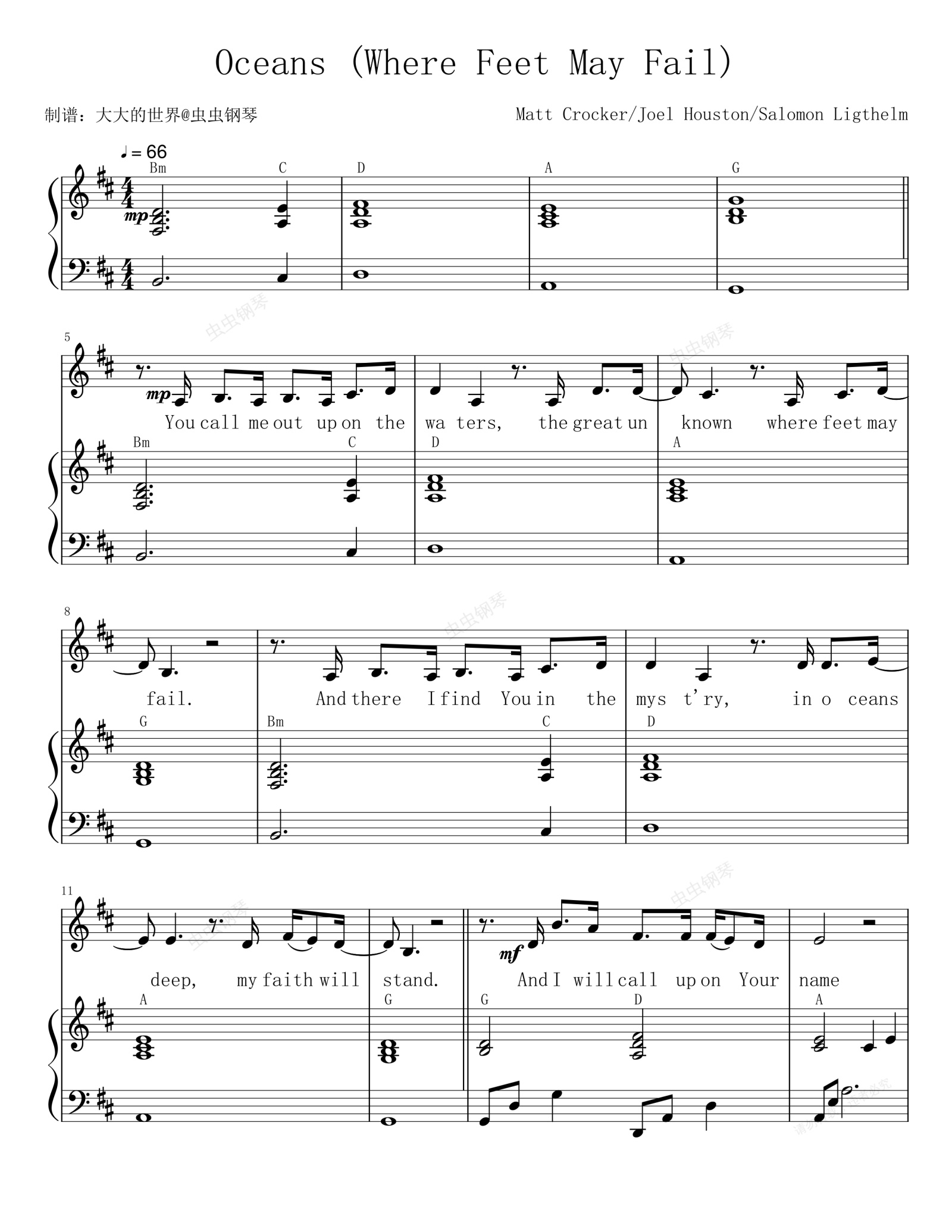 钢琴谱:Oceans(Where Feet May Fail) - Maranatha! Music