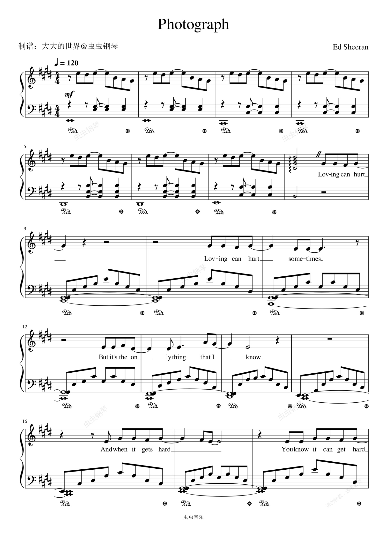 钢琴谱:Photograph - Ed Sheeran (艾德·希兰)