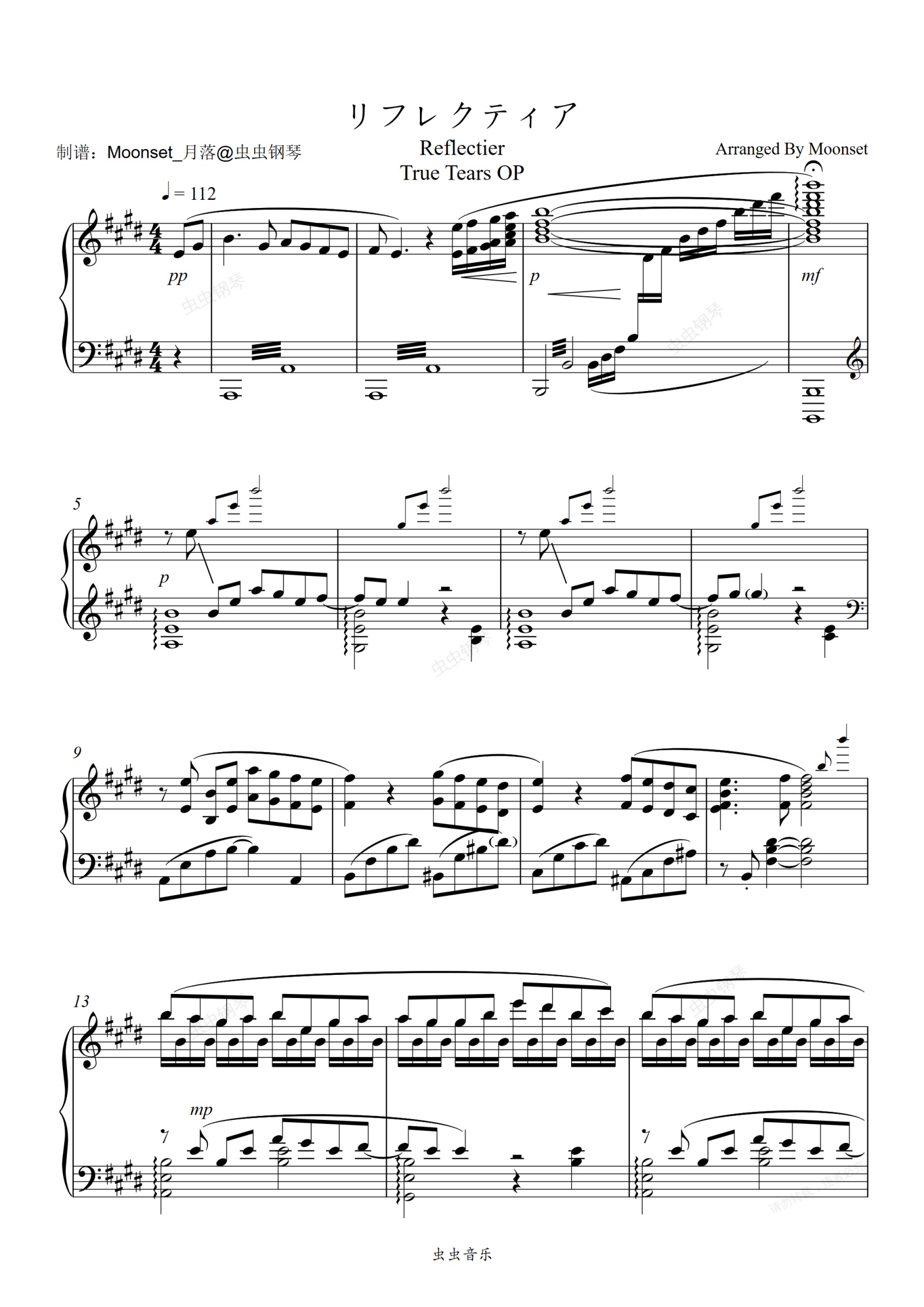 钢琴谱:リフレクティア——真实之泪OP完美钢琴版