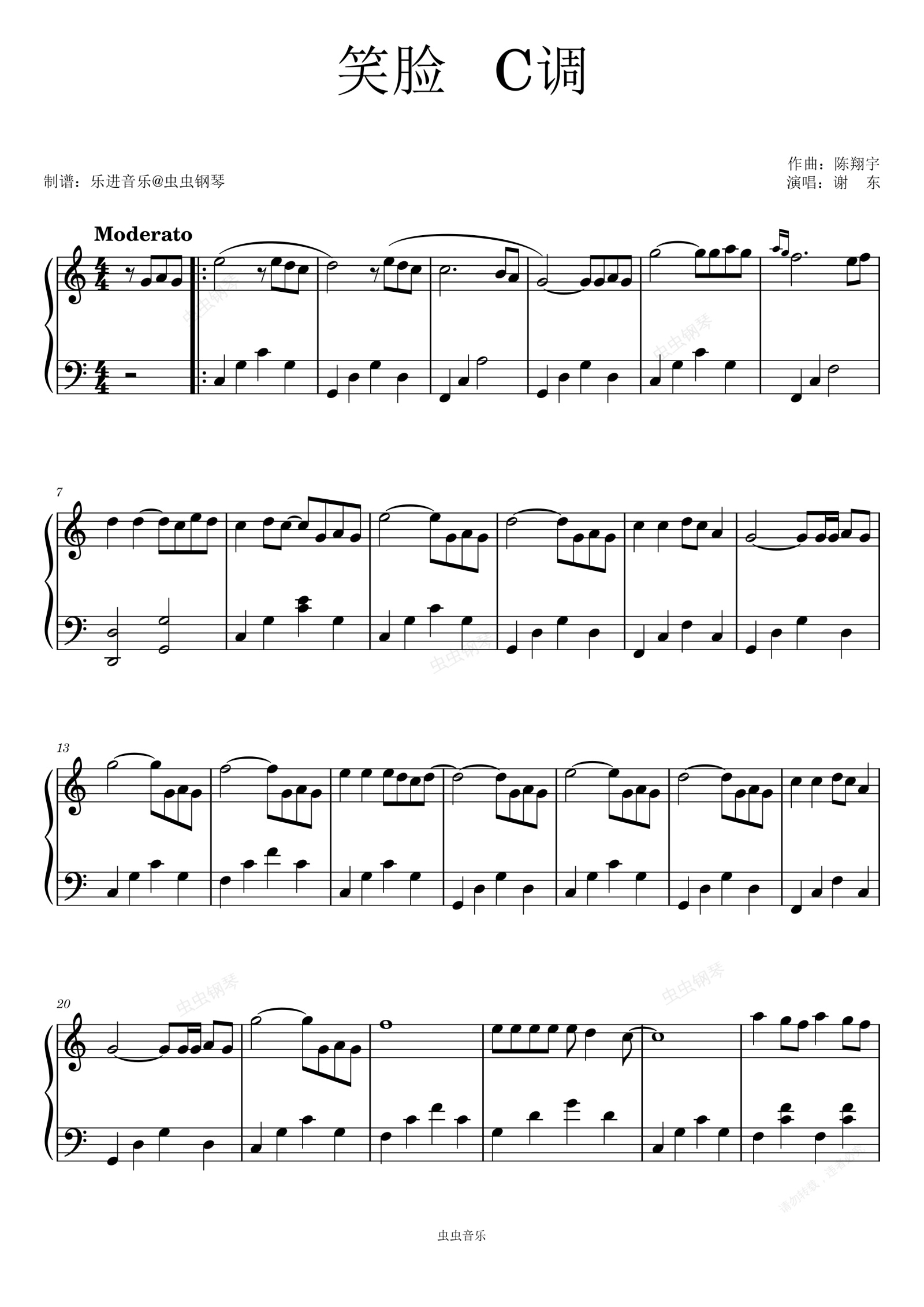 钢琴谱:《笑脸》90年代华语经典 C调简易版