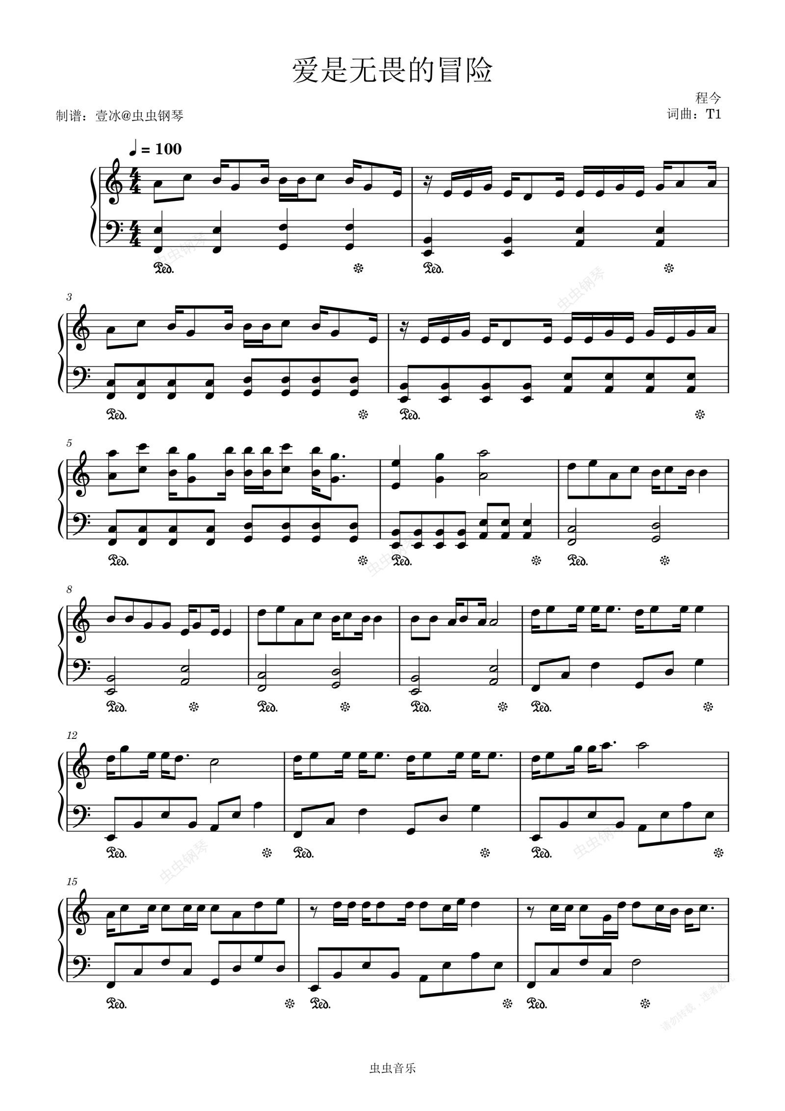 钢琴谱:爱是无畏的冒险//程今-简单易上手C调