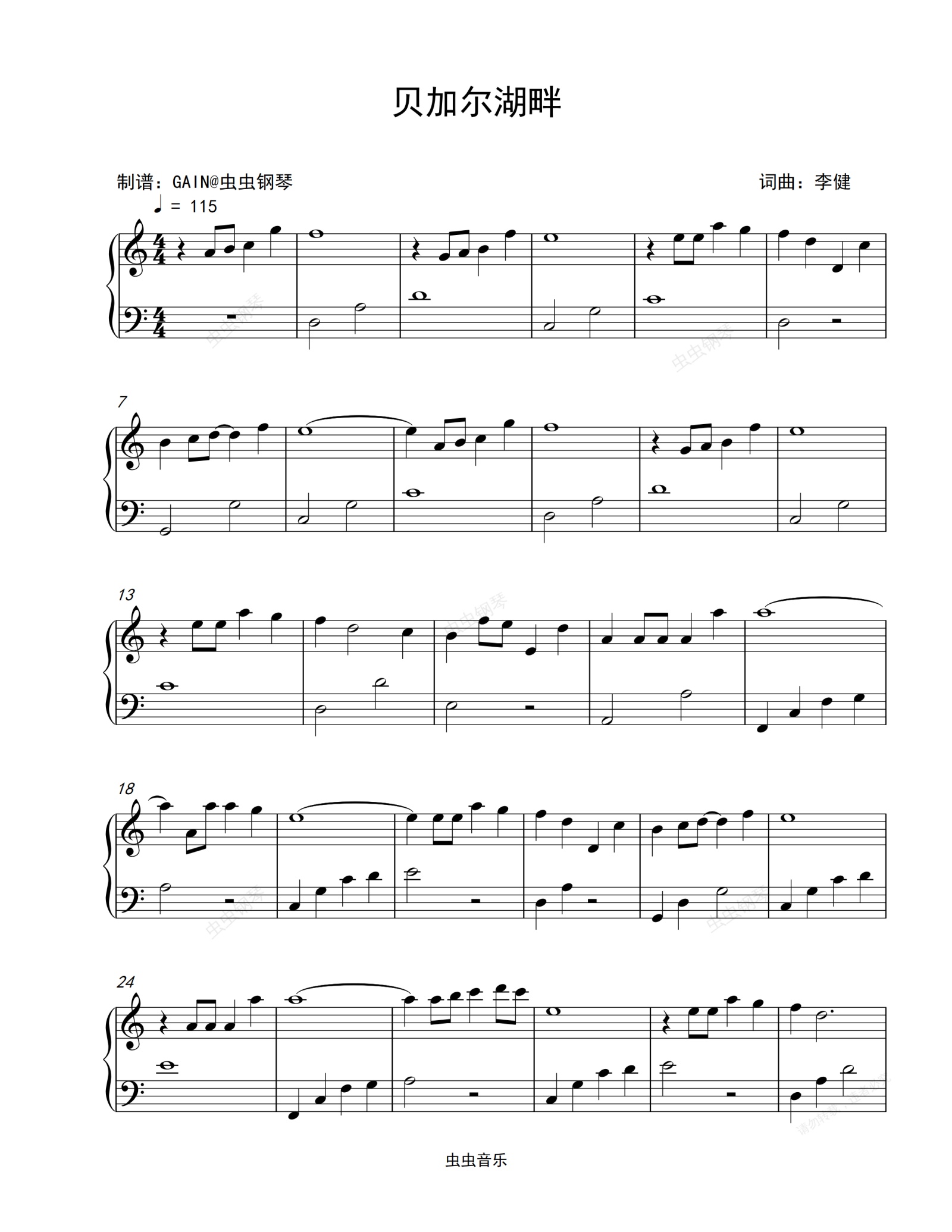 钢琴谱:贝加尔湖畔-李健-C调简单版