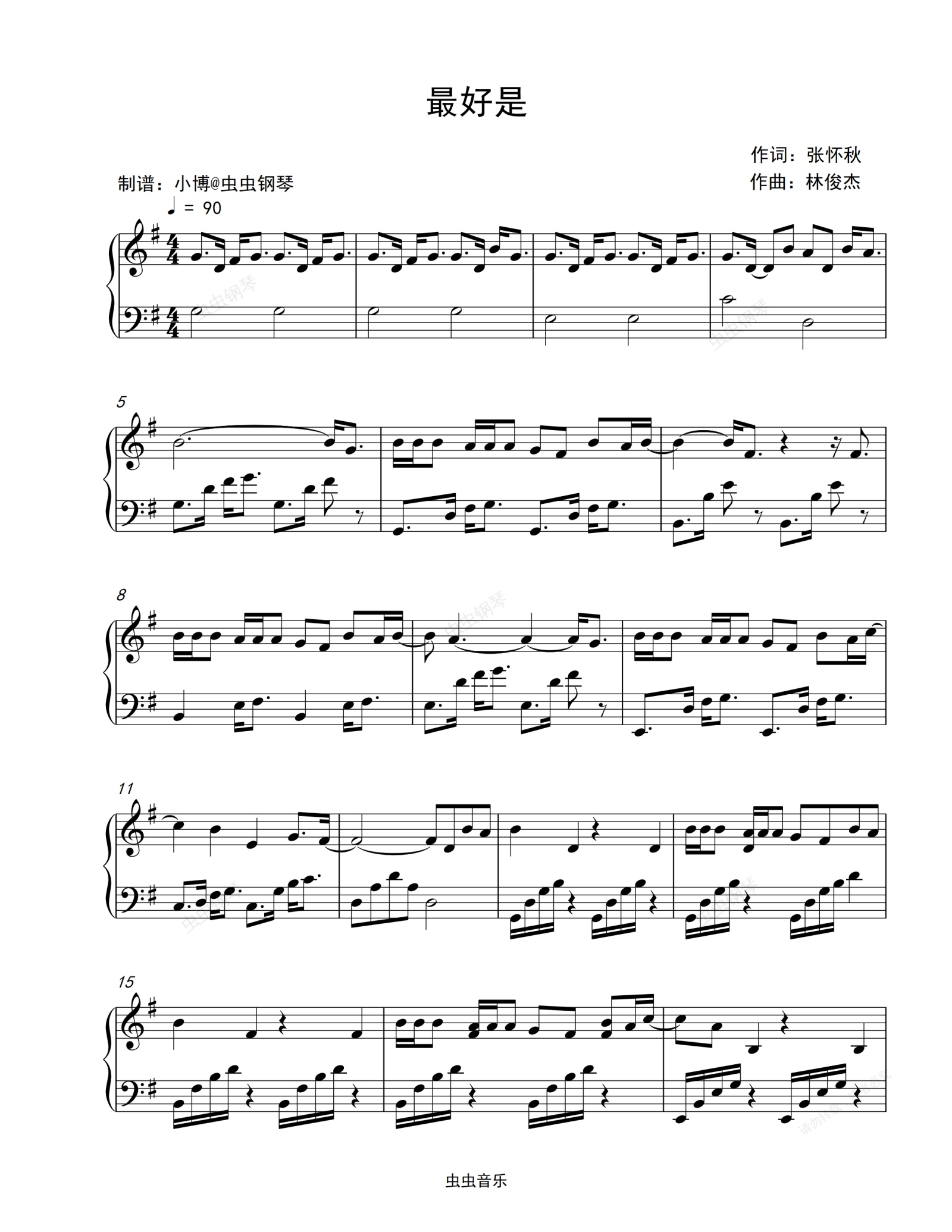 钢琴谱:最好是-林俊杰