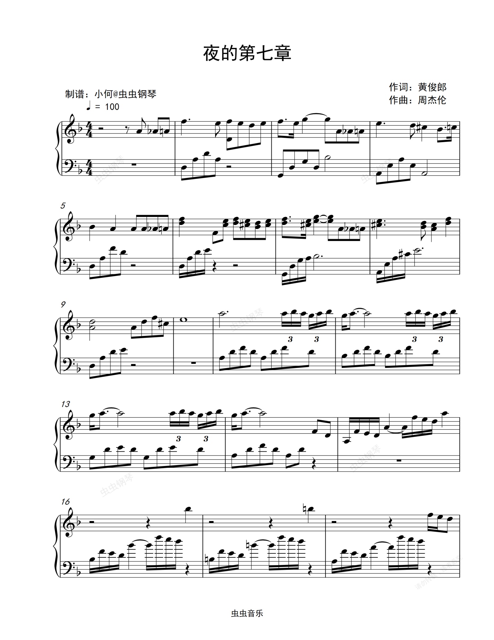 钢琴谱:夜的第七章-周杰伦