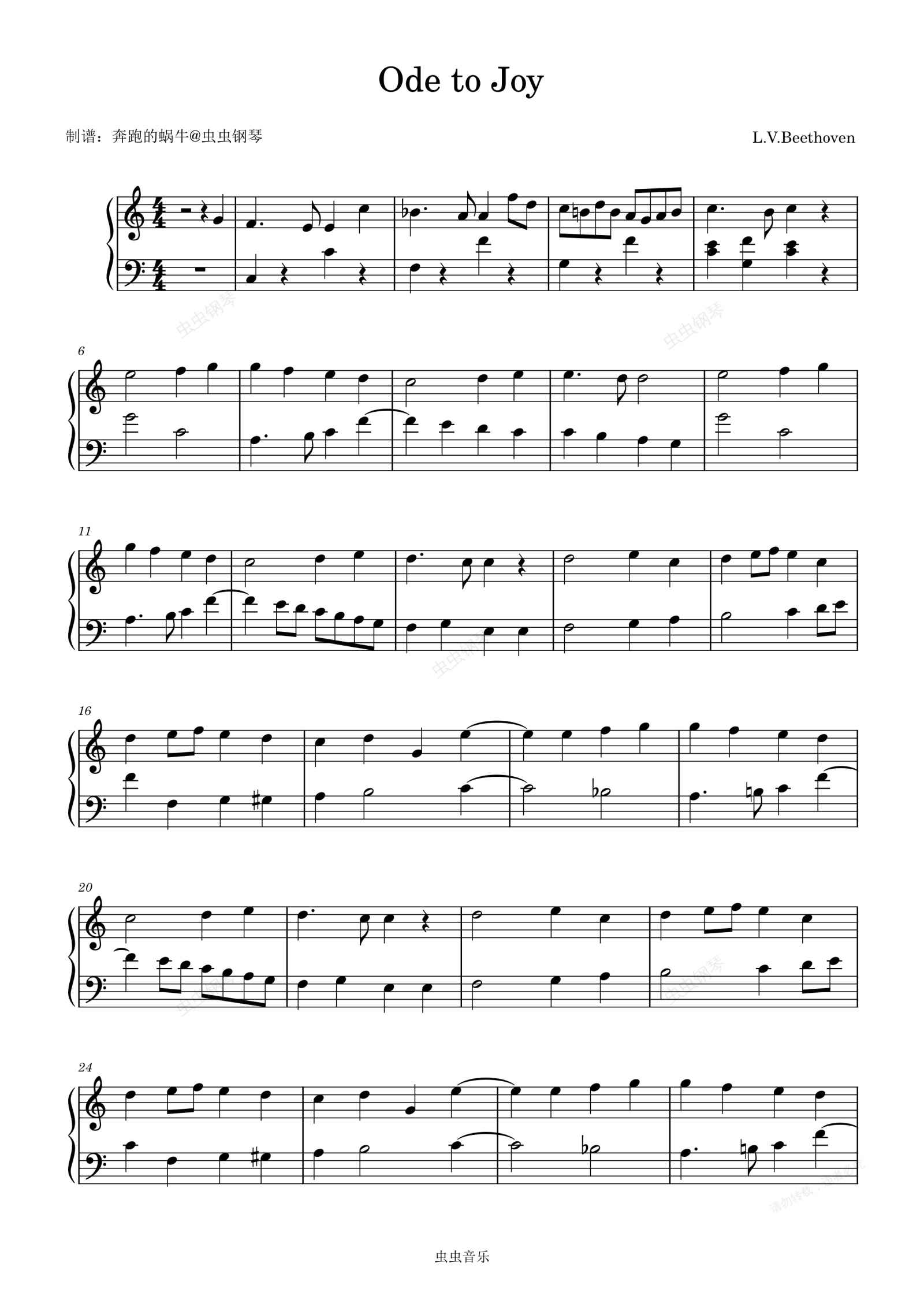 钢琴谱:Ode to Joy 雅马哈电钢版