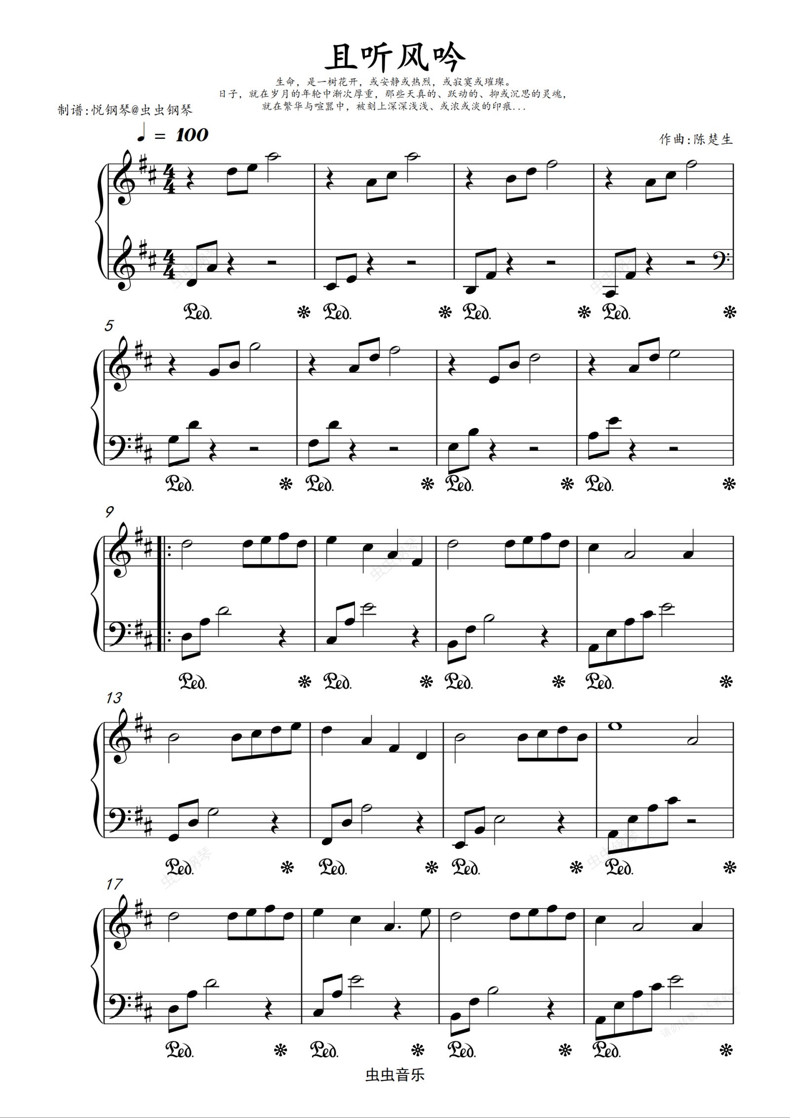 钢琴谱:且听风吟-纯音乐-原调版(电视剧《蜗居》钢琴插曲)