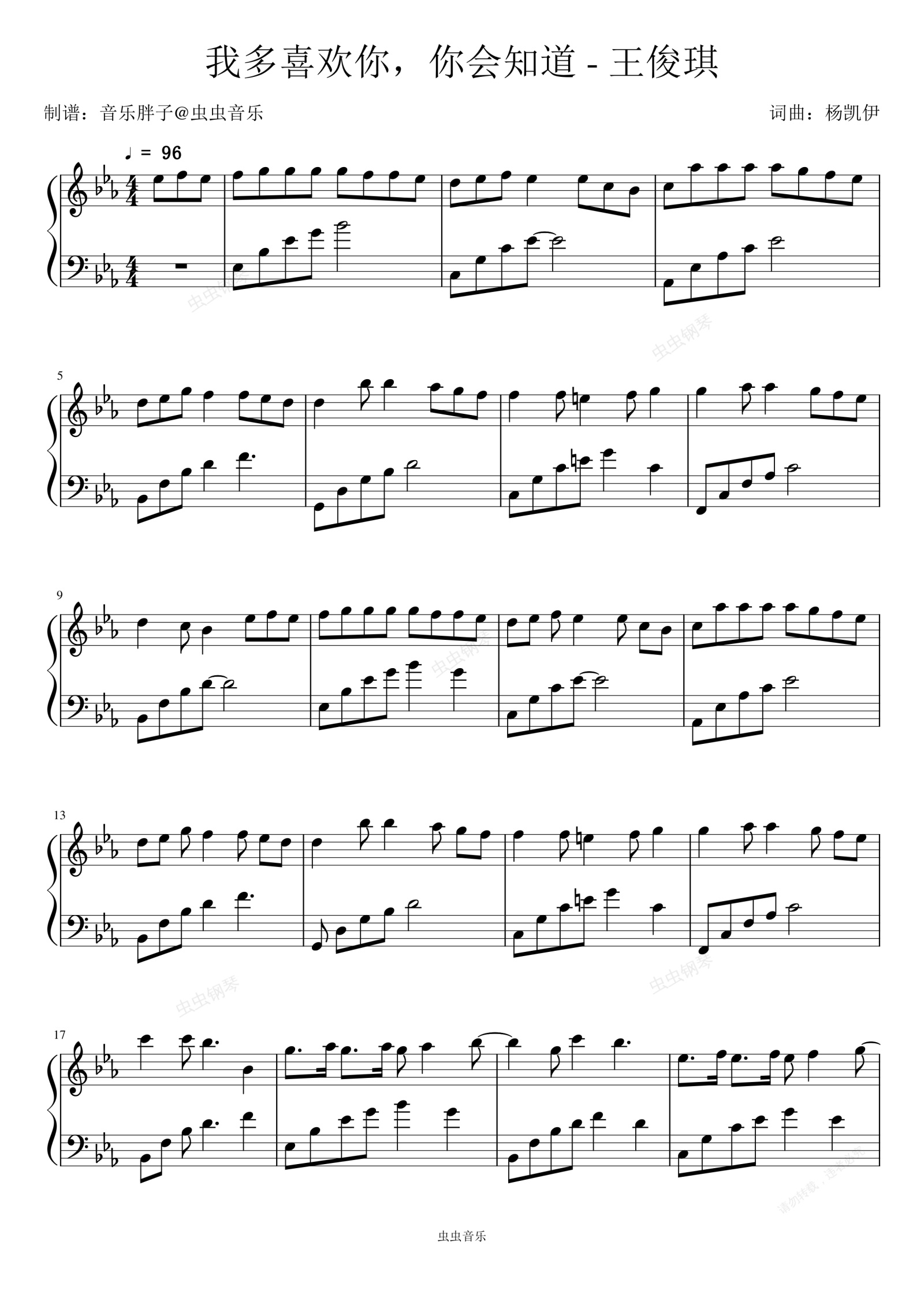 钢琴谱:我多喜欢你,你会知道 - 王俊琪