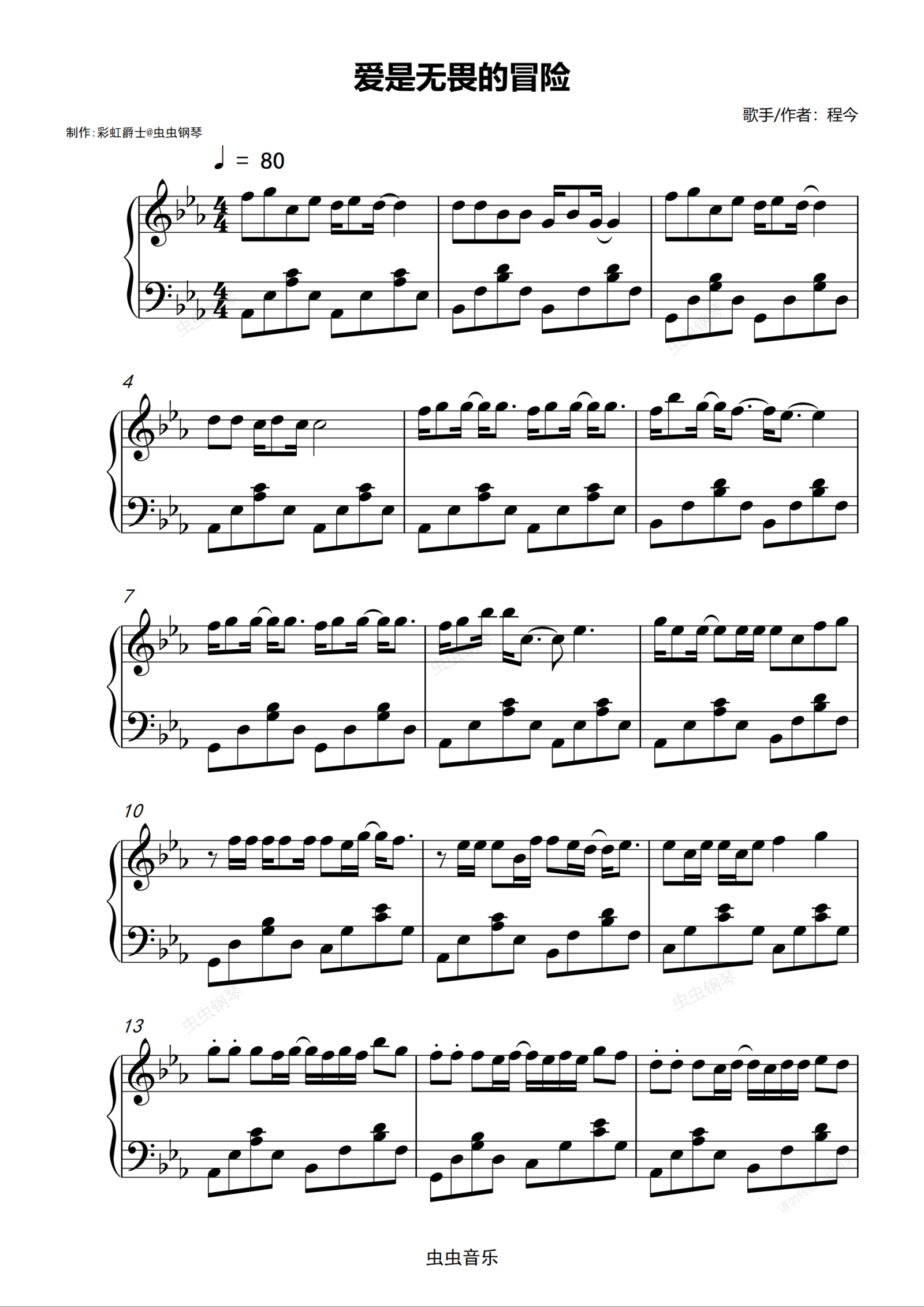 钢琴谱:爱是无畏的冒险 程今 简单版