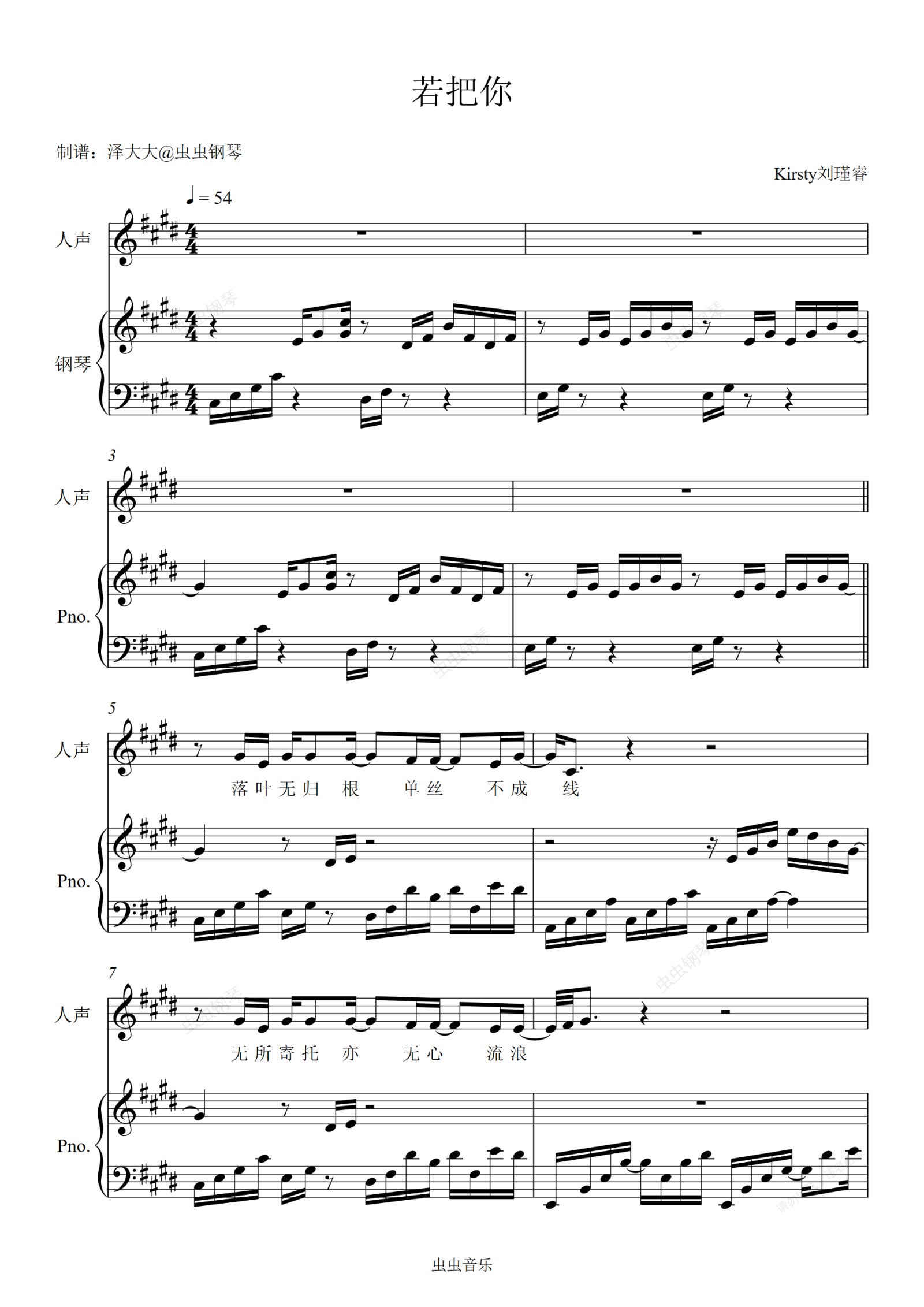 钢琴谱:若把你【原版弹唱附词】泽大大 Kirsty刘瑾睿