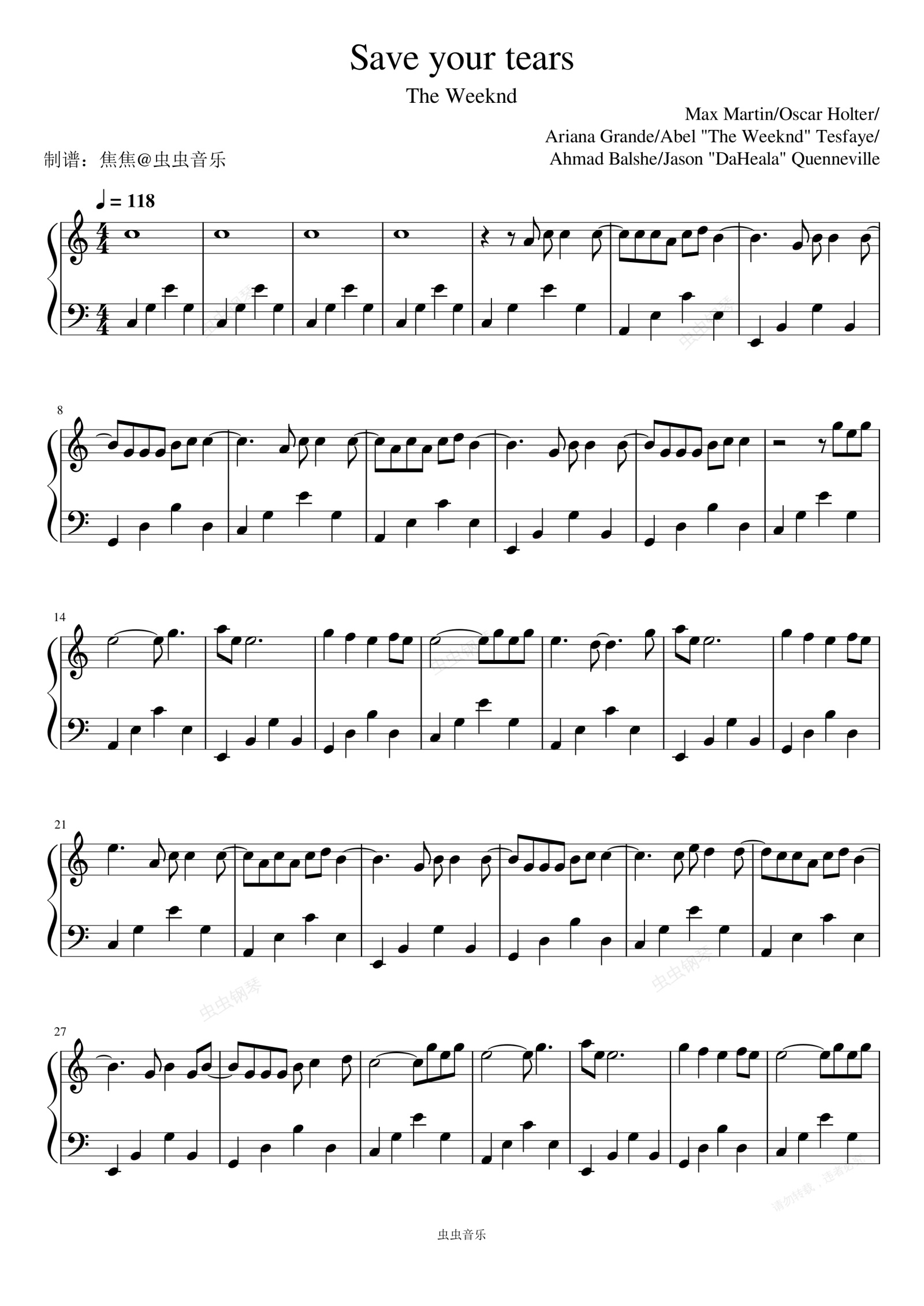钢琴谱:Save Your Tears (Remix) - The Weeknd/Ariana Grande (爱莉安娜·格兰德)