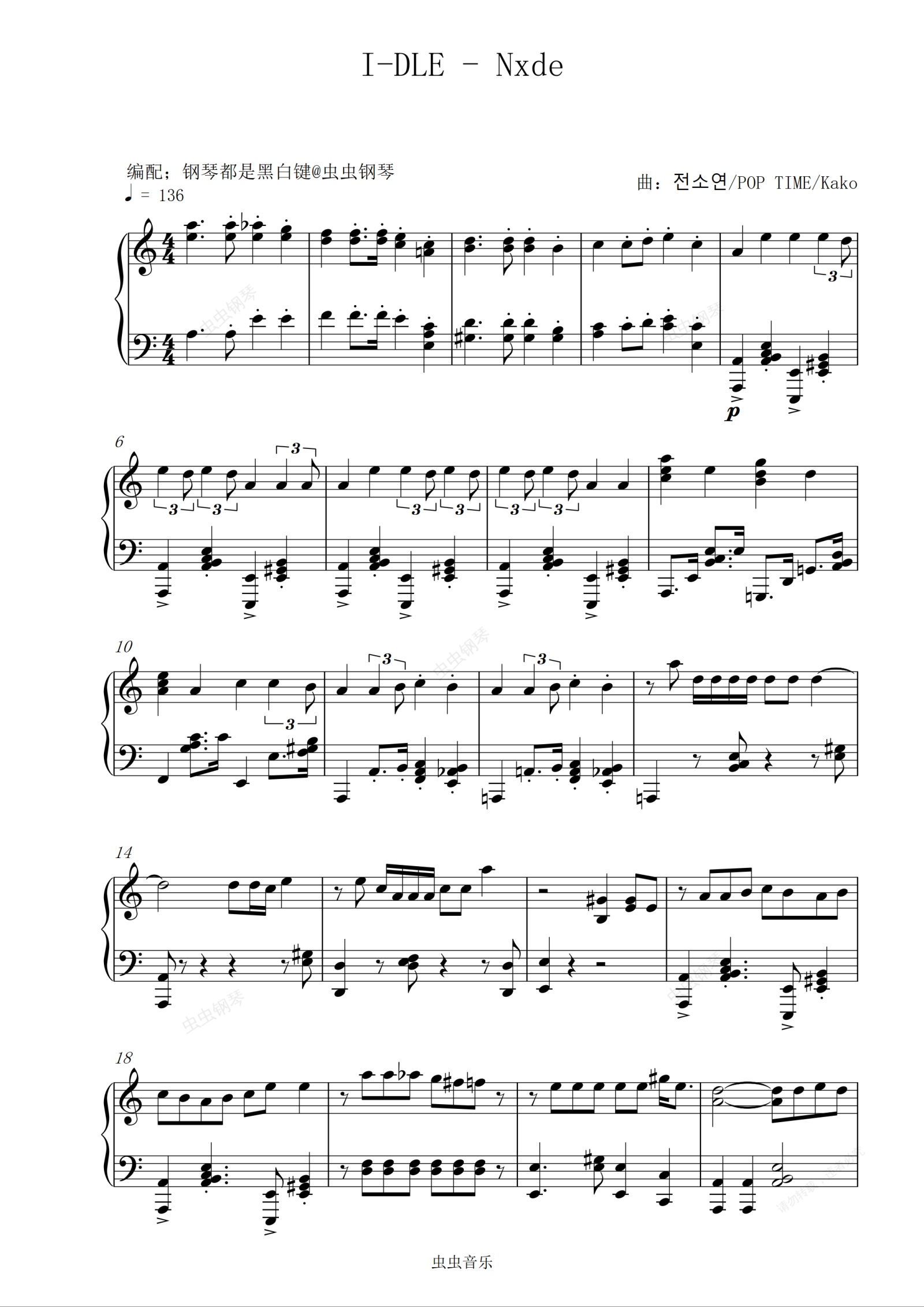 钢琴谱:【(G)I-DLE】- 'Nxde' [钢琴演奏版]
