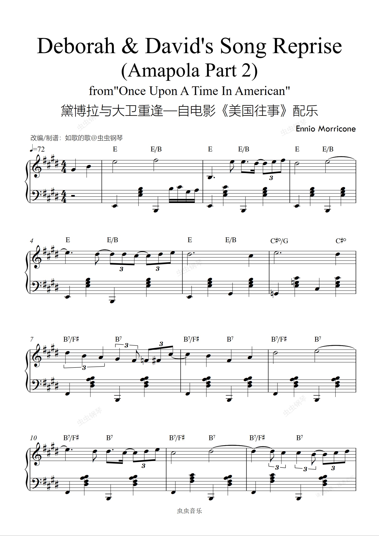 钢琴谱:Deborah&David's Song Reprise黛博拉与大卫重逢曲《美国往事》ost Amapola Part 2