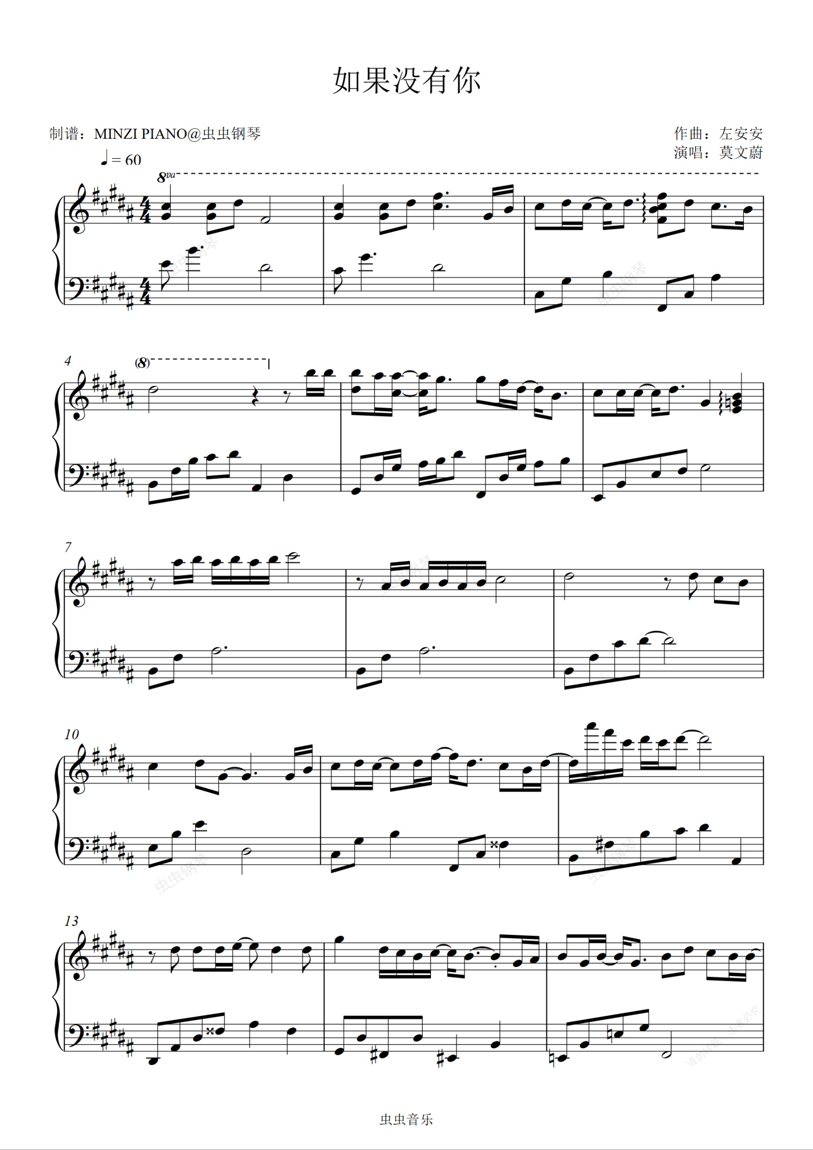 钢琴谱:如果没有你-莫文蔚 原调