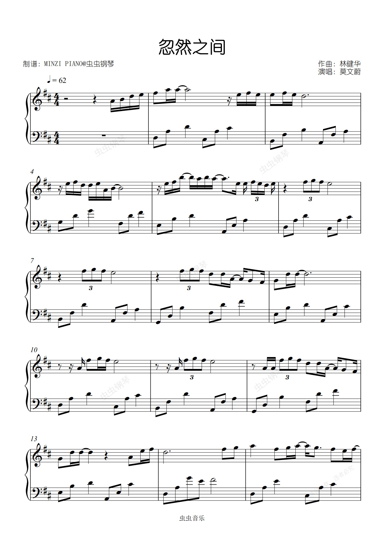 钢琴谱:忽然之间-莫文蔚 原调